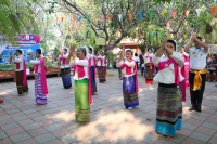 - แต่งกายแบบไทยใส่เสื้อขาว (สื่อถึงวันพระ) ใส่สายสะพายสีฟ้า (สื่อถึงสีประจำวันเกิดองค์หลวงพ่อเจ้าอาวาส)