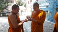พระครูกาญจนสุตาภรณ์ ผู้อำนวยการโรงเรียน ได้ให้โอวาท และกำลังใจแก่สามเณร