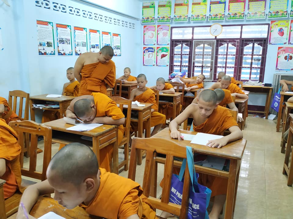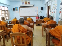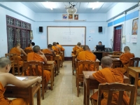 พระครูกาญจนสุตาภรณ์ ผู้อำนวยการโรงเรียน ได้ให้โอวาท และกำลังใจแก่สามเณร