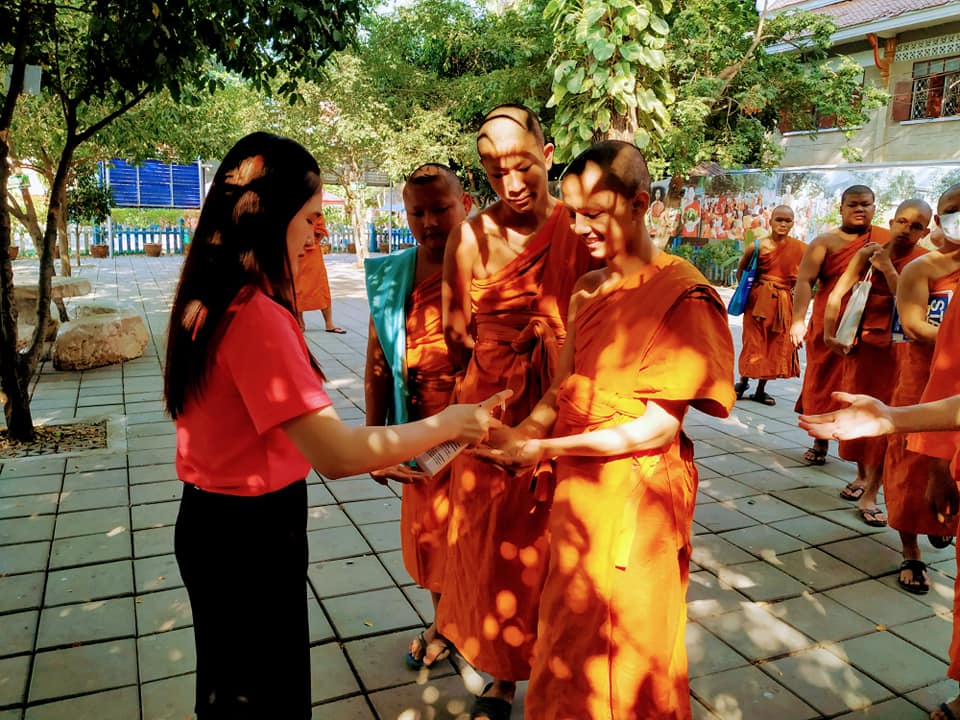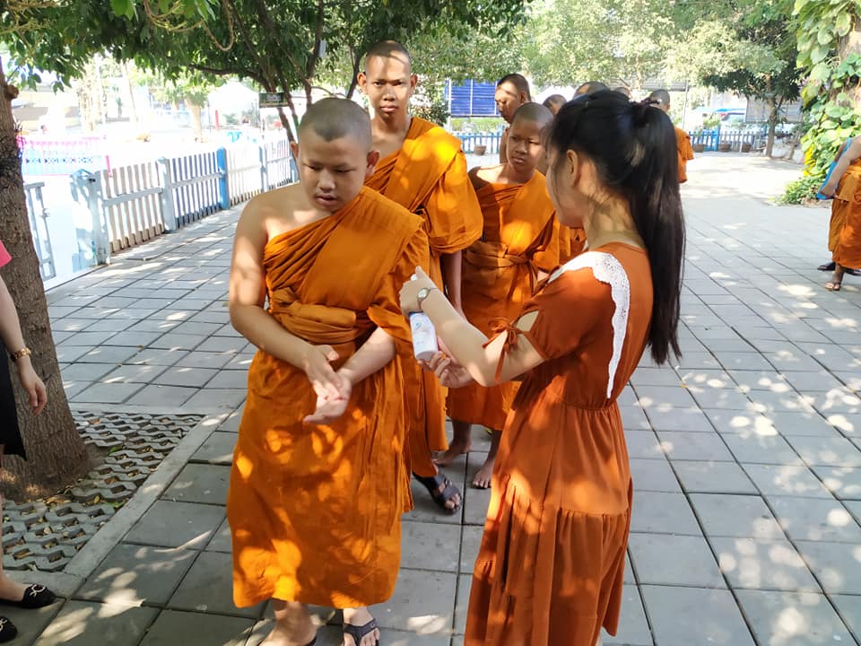 พร้อมด้วยให้สามเณรทุกรูป และคุณครูล้างมือด้วยเจลล้างมือ เพื่อป้องกันโรคติดเชื้อไวรัสโคโรนา (COCID-19) สนับสนุนโดย คุณทิพวรรณ บัวทอง และคณะนำมาถวาย 10 ขวด