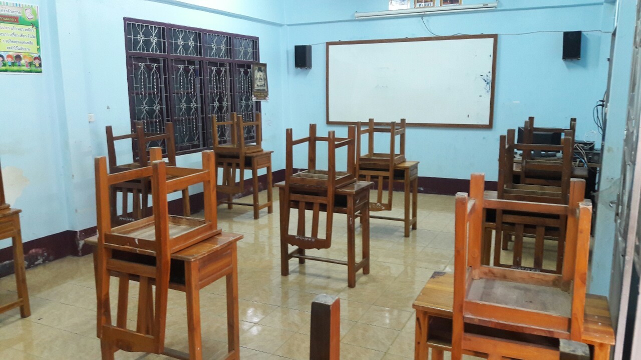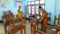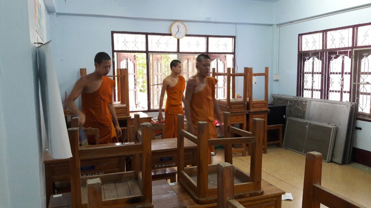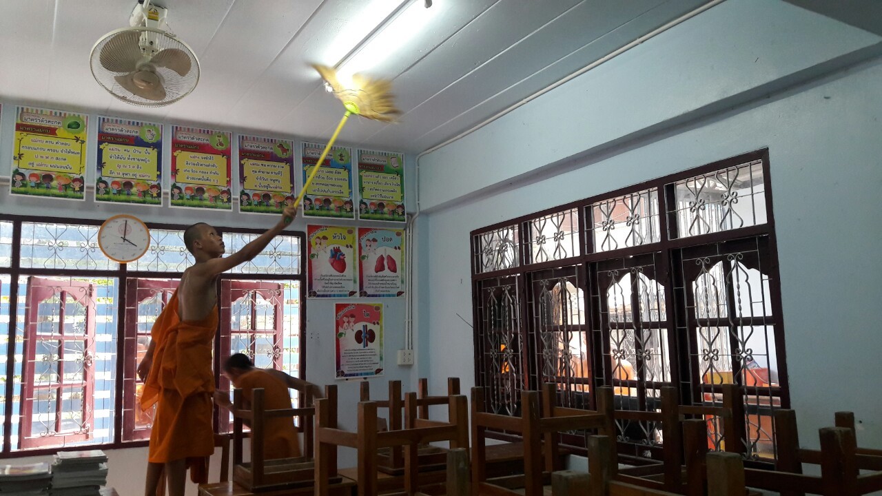 คณะครูและสามเณรร่วมกันทำความสะอาด จัดห้องเรียน