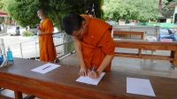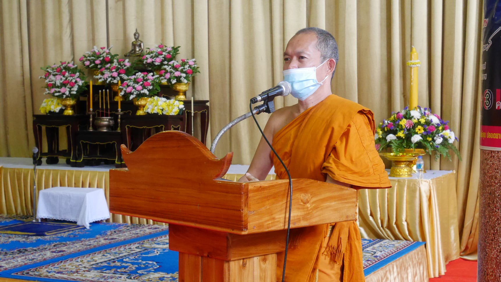 ประธานจุดธูปเทียน บูชาพระรัตรตรัย ในการปฐมนิเทศ โรงเรียนพระปริยัติธรรมวัดไชยชุมพชนะสงคราม แผนกนักธรรม, แผนกบาลี, และแผนกสามัญศึกษา ประจำปีการศึกษา ๒๕๖๓