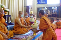 พระเทพปริยัติโสภณ เจ้าคณะจังหวัดกาญจนบุรี ผู้จัดการโรงเรียน ประธานจุดธูปเทียนบูชาพระรัตนตรัย วันไหว้ครู โรงเรียนพระปริยัติธรรมวัดไชยชุมพลชนะสงคราม โดยมีพระครูกาญจนสุตาภรณ์ ผู้อำนวยการโรงเรียน กล่าวราย พร้อมคณะครู สามเณร ณ ศาลาการเปรียญวัดไชยชุมพลฯ หลวงพ่อมอบรางวัลพานไหว้ครูที่ ๑ ๕๐๐ บาท ที่๒ ๓๐๐ บาท ที่๓ ๒๐๐ บาท |