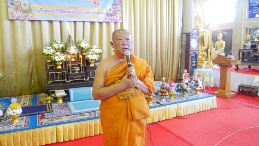 พระเทพปริยัติโสภณ เจ้าคณะจังหวัดกาญจนบุรี ผู้จัดการโรงเรียน ประธานจุดธูปเทียนบูชาพระรัตนตรัย วันไหว้ครู โรงเรียนพระปริยัติธรรมวัดไชยชุมพลชนะสงคราม โดยมีพระครูกาญจนสุตาภรณ์ ผู้อำนวยการโรงเรียน กล่าวราย พร้อมคณะครู สามเณร ณ ศาลาการเปรียญวัดไชยชุมพลฯ หลวงพ่อมอบรางวัลพานไหว้ครูที่ ๑ ๕๐๐ บาท ที่๒ ๓๐๐ บาท ที่๓ ๒๐๐ บาท |
