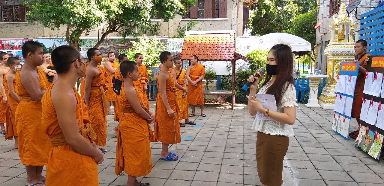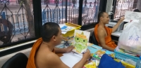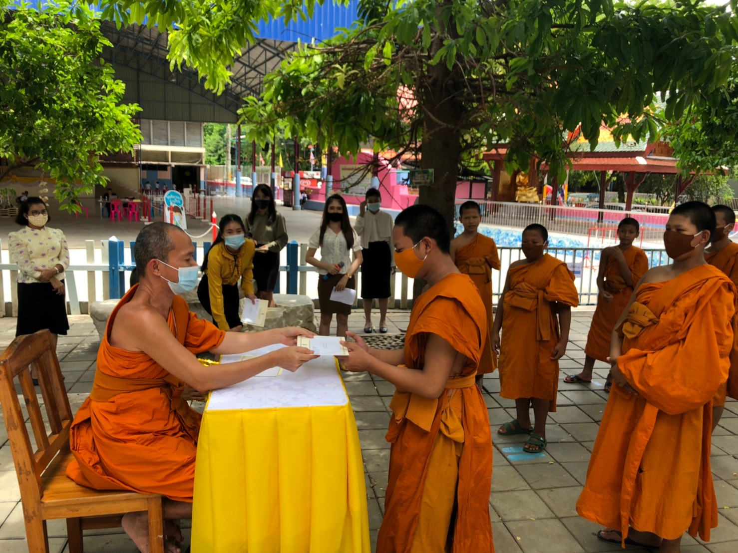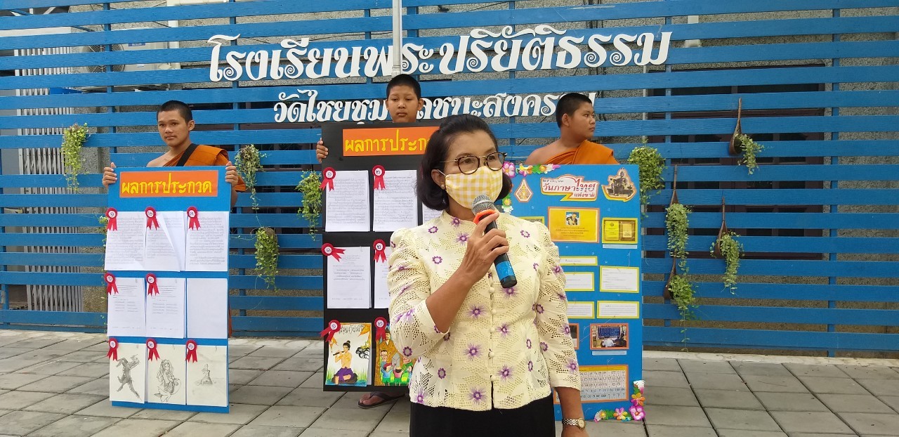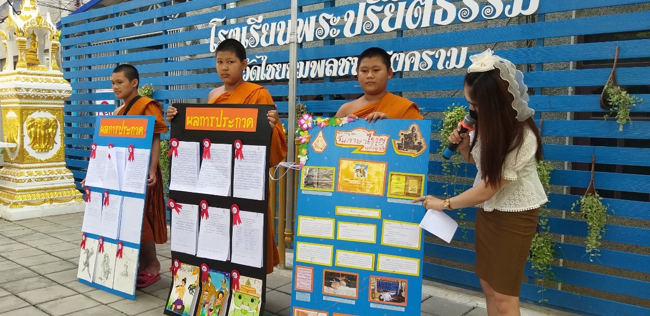 มอบรางวัลให้กับสามเณร ในการแข่งขันในวันภาษาไทย