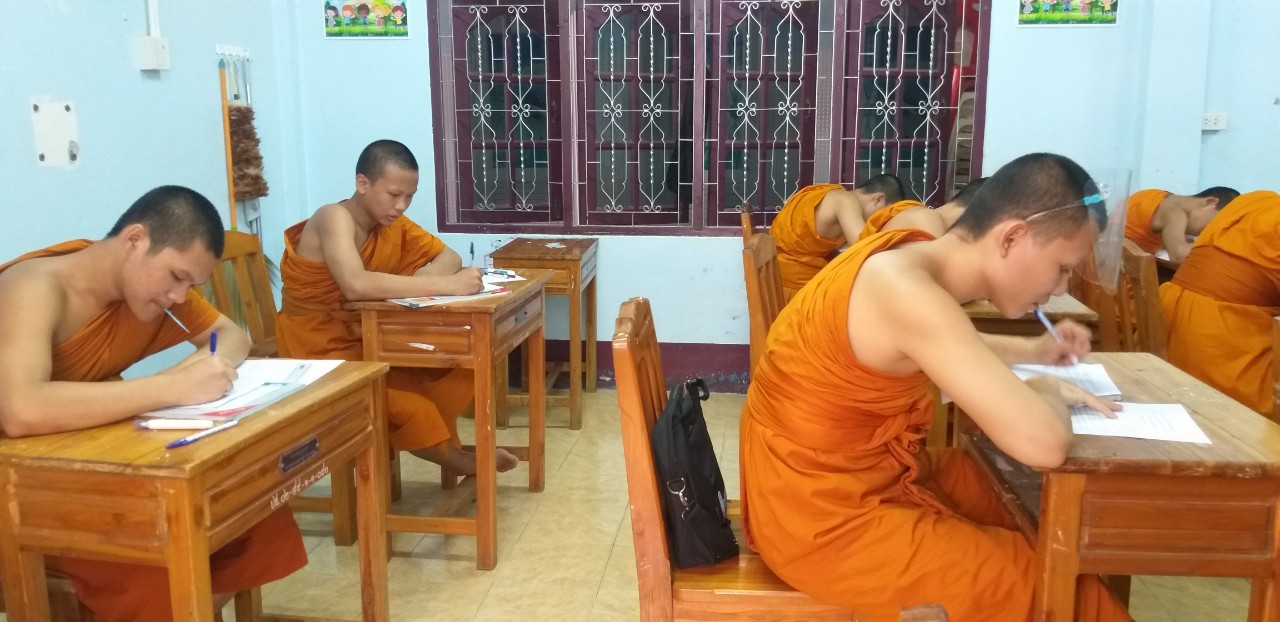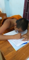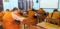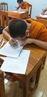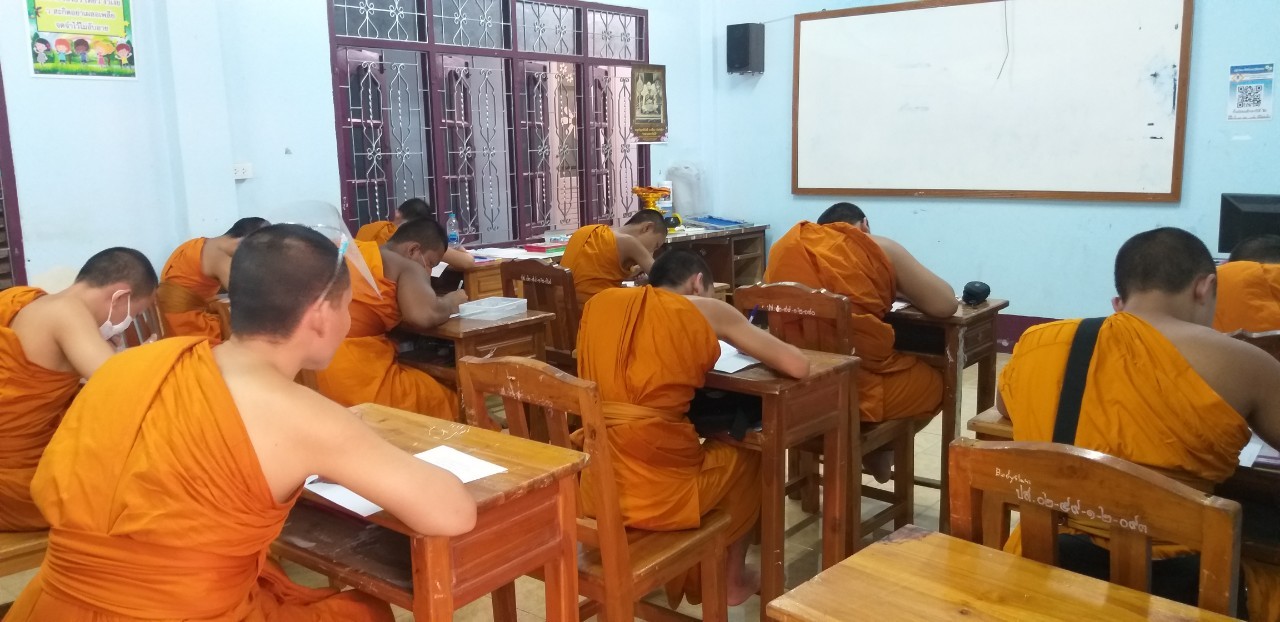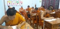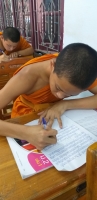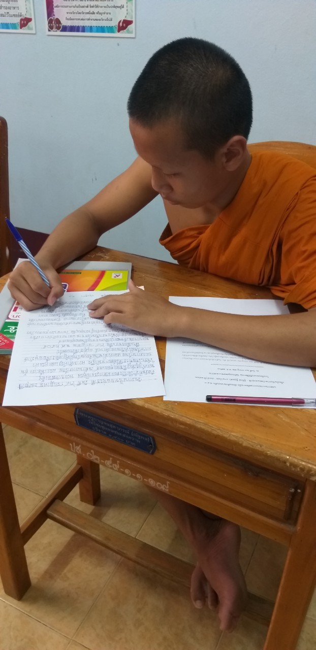มอบรางวัลให้กับสามเณร ในการแข่งขันในวันภาษาไทย