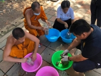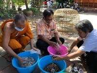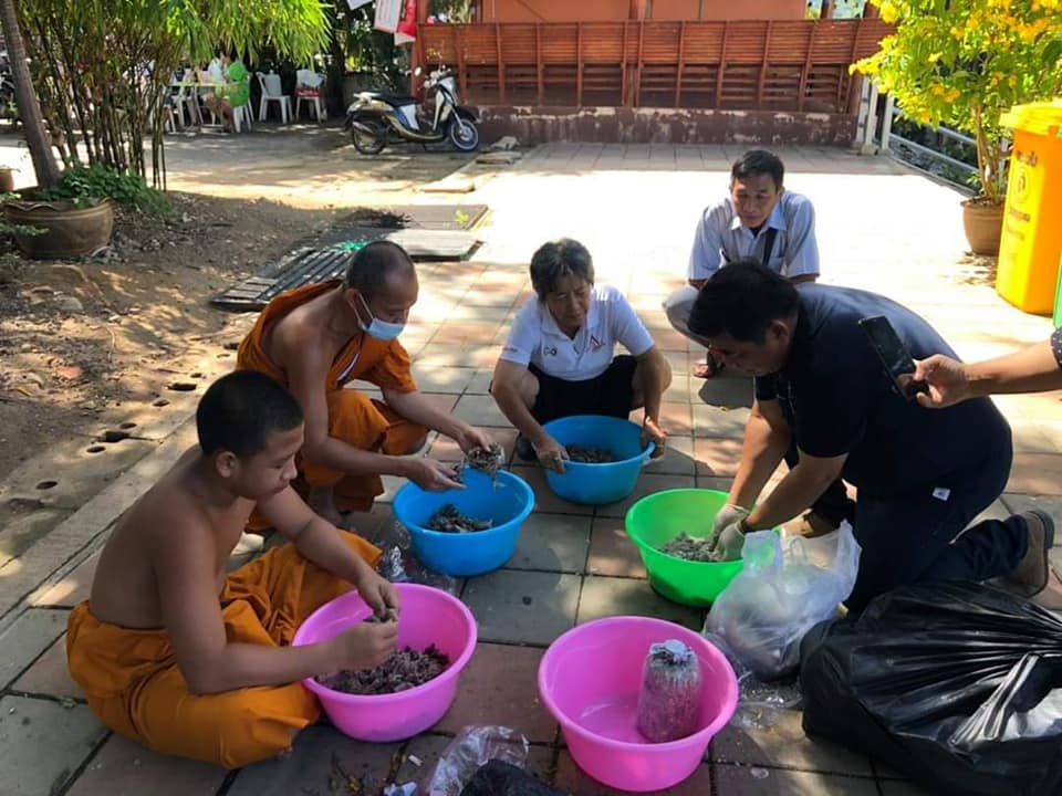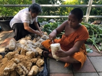 คุณภิรัตน์ราชมานิต มานิตยกุล (คุณเอก) วิทยากรจิตอาสา จาก ต. ลาดหญ้า อ.เมืองกาญจนบุรี เป็นวิทยากรสอนสามเณรทำเห็ดนางฟ้า โดยมพระครูกาญจนสุตาภรณ์ ผอ.โรงเรียน พระมหาประพันธ์ ชยปญฺโญ คณะสามเณรจิตอาสา ร่วมฟังการบรรยายและลงมือปฏิบัติจริง