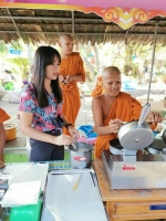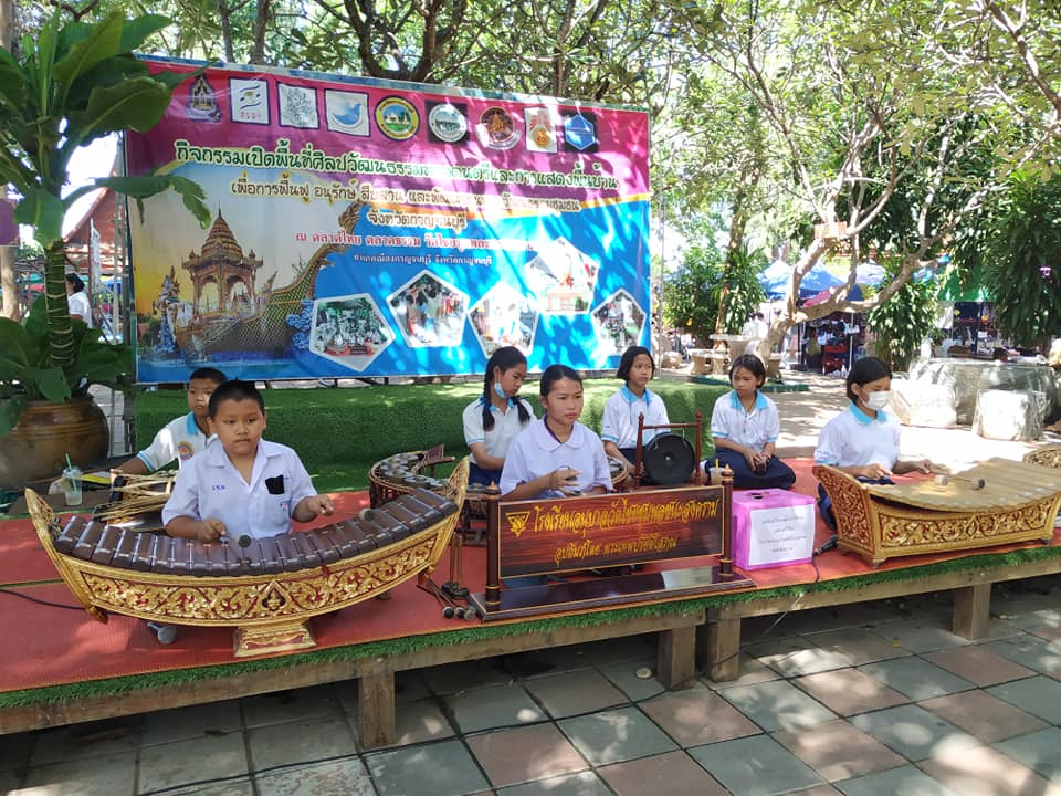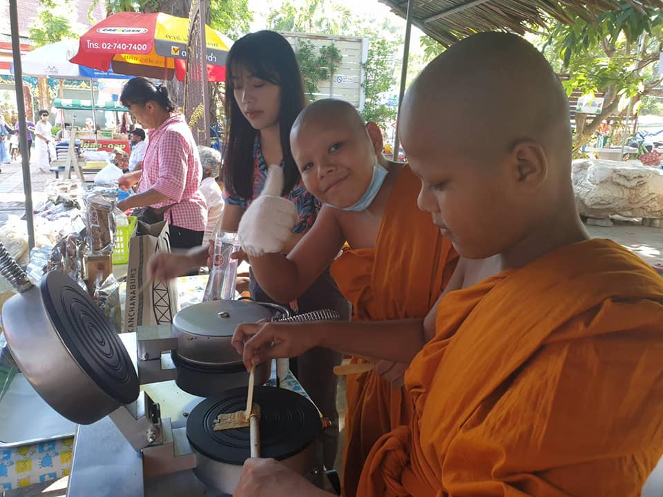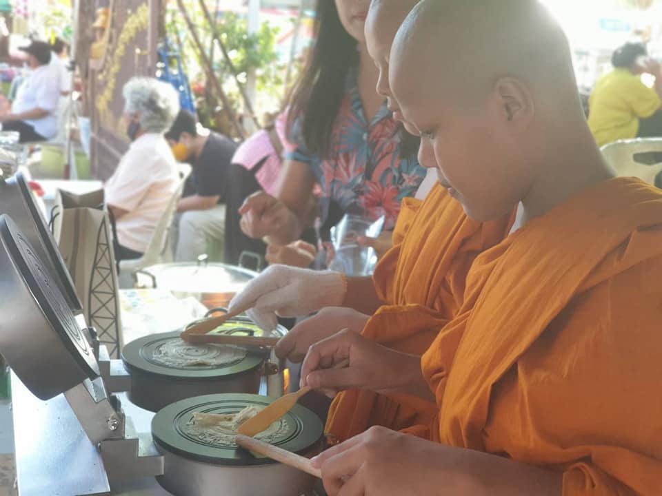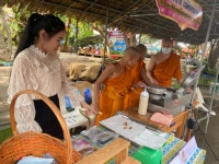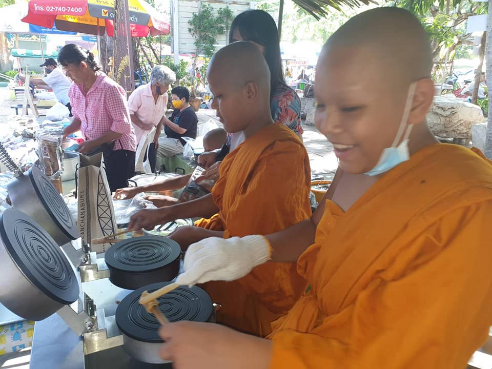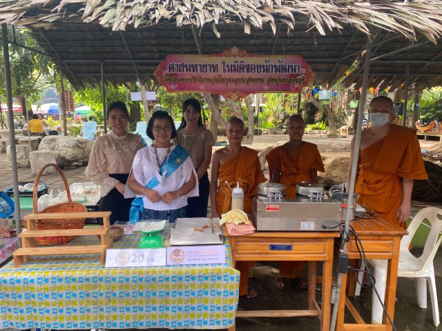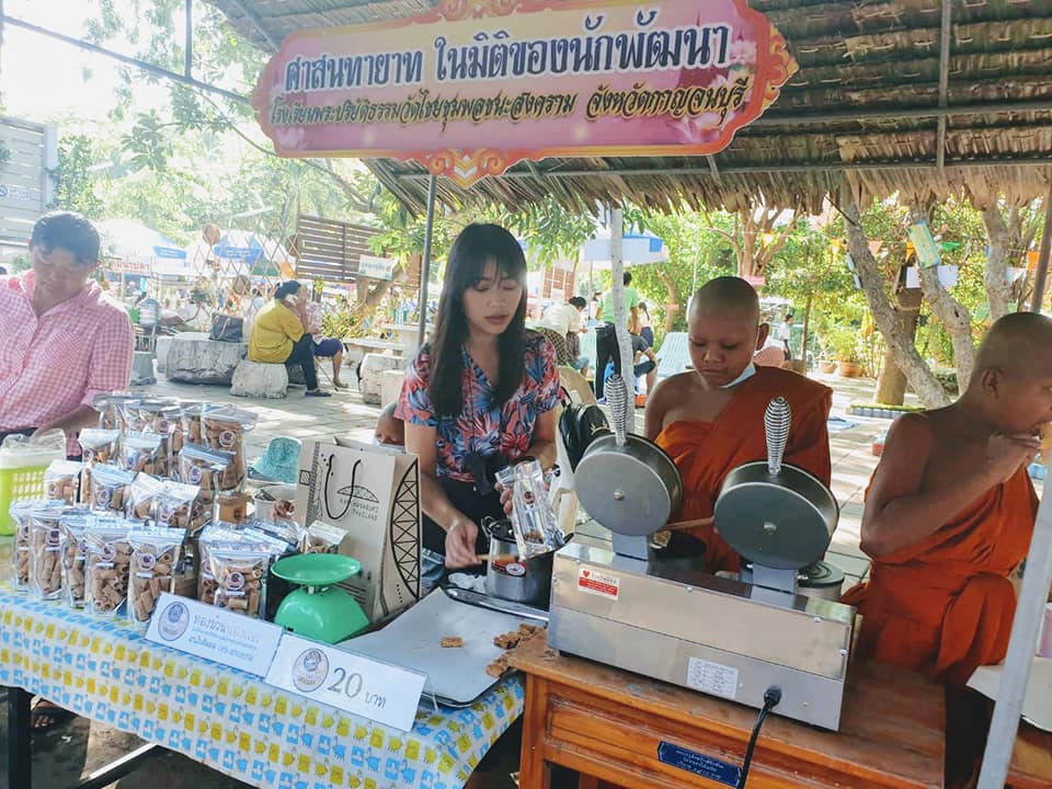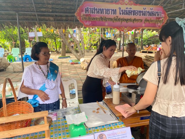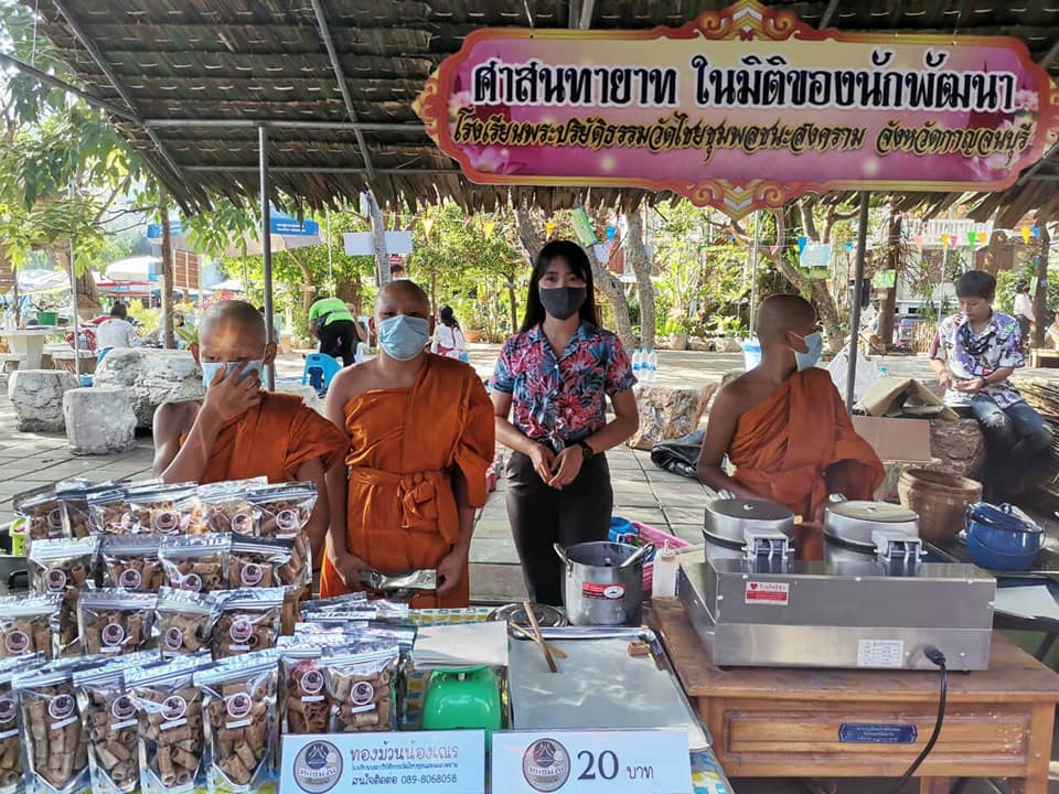 นำโดยครูนิศรา ศิลาวงษ์ นำขนมทองมวลน้องเณร มาออกร้านที่ตลาดไทย ตลาดธรรม