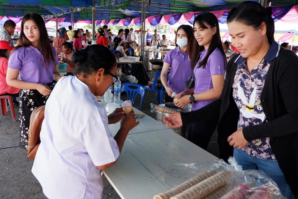 และคณะครู ออกโรงทานไอศครีม ๔๐ กิโล งานทำบุญ ๙๐ ปี ชาตกาล (ครบรอบวันเกิด)