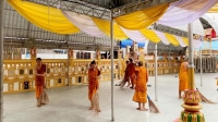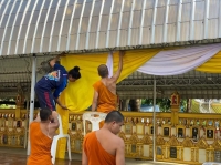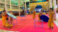 เพื่อถวายแด่พระภิกษุ สามเณร ผูกผ้าระบายบริเวณรอบพระอุโบสถ