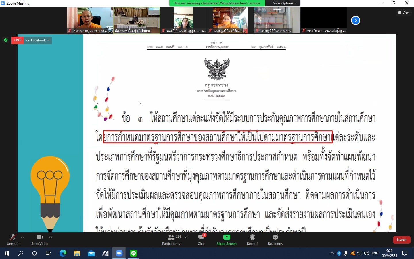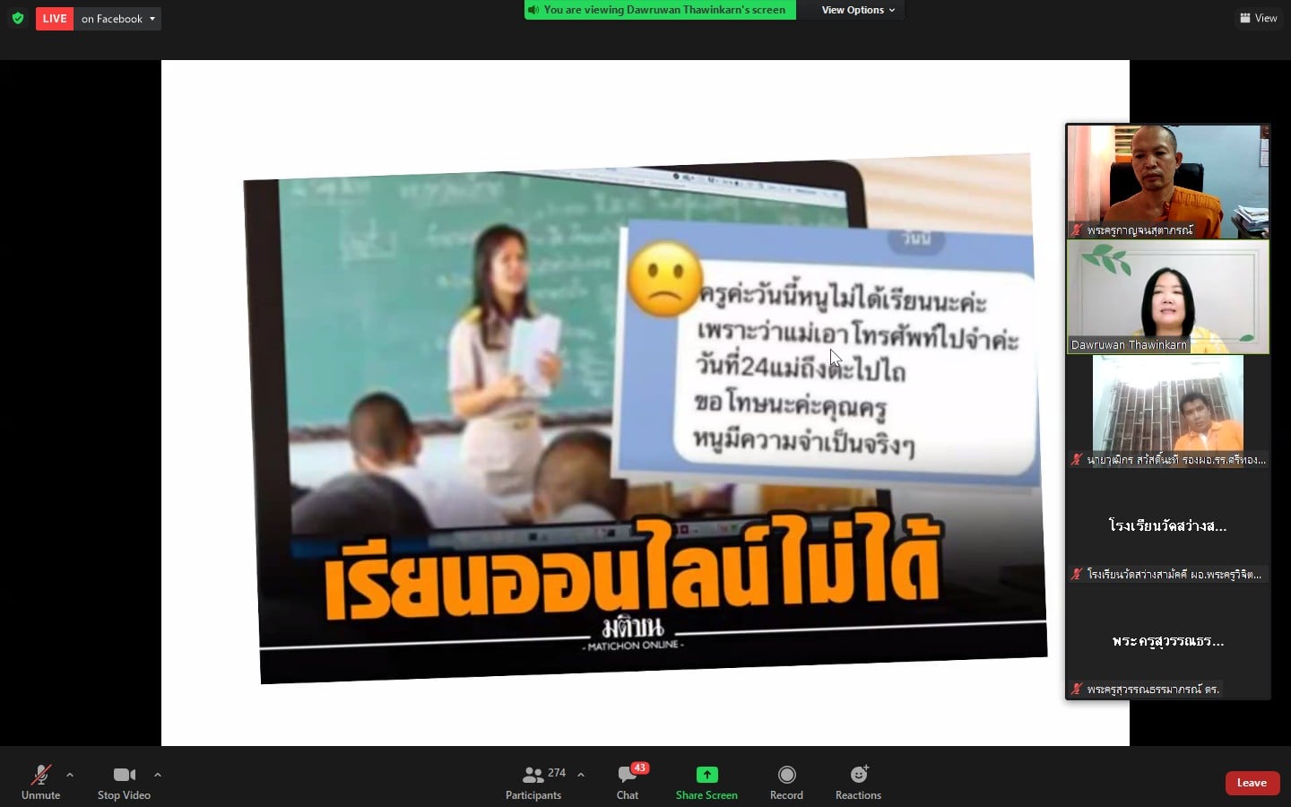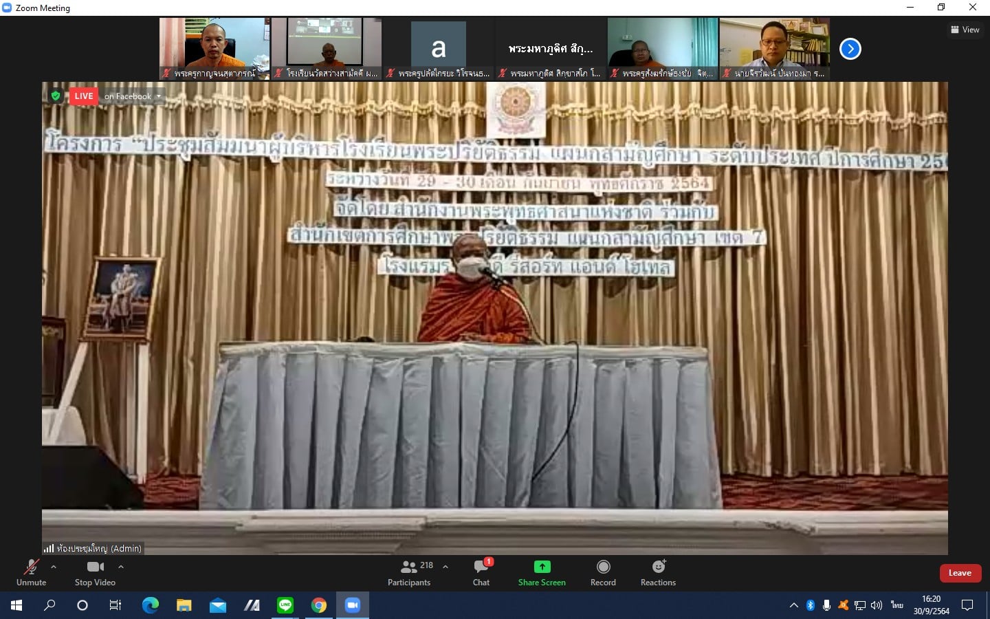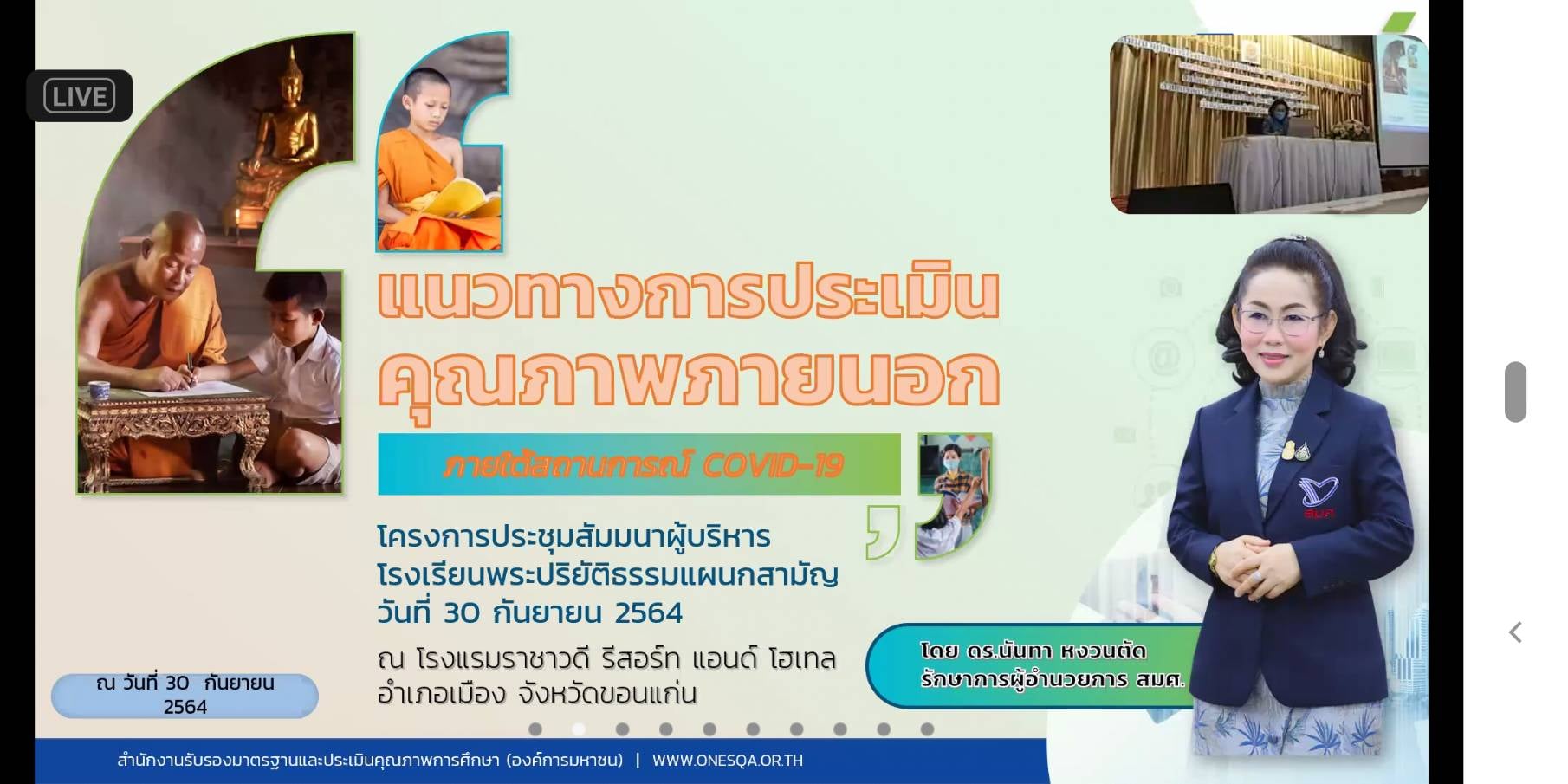 ในวันที่ ๒๘ กันยายน ๒๕๖๔ พระครูกาญจนสุตาภรณ์ ผู้อำนวยการโรงเรียนปริยัติธรรมวัดไชยชุมพลชนะสงคราม เข้าร่วมการประชุมโครงการสัมมนาผู้บริหารโรงเรียนพระปริยัติธรรม แผนกสามัญศึกษา ระดับประเทศ ประจำปีการศึกษา ๒๕๖๔ ระหว่างวันที่ ๒๙ - ๓๐ กันยายน ๒๕๖๔ จัดโดยสำนักงานพระพุทธศาสนาแห่งชาติ ผ่านระบบ ZOOM |