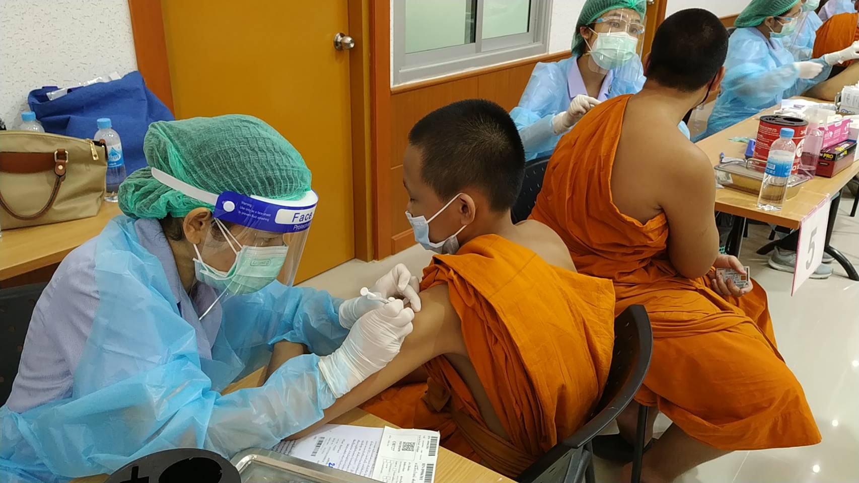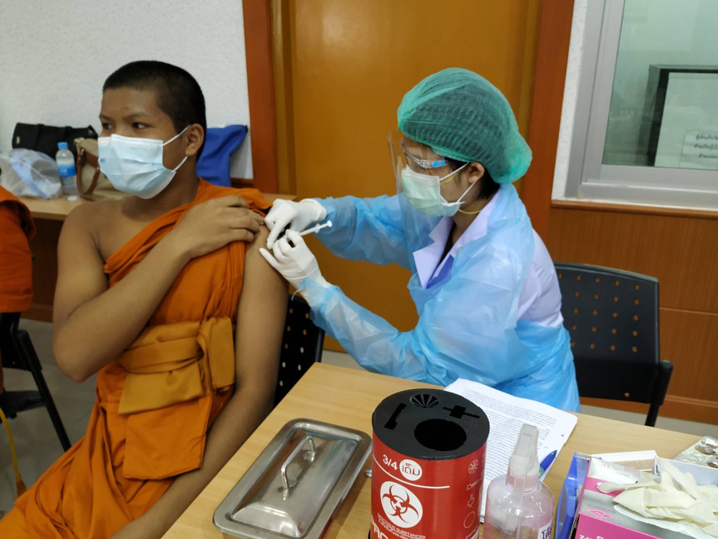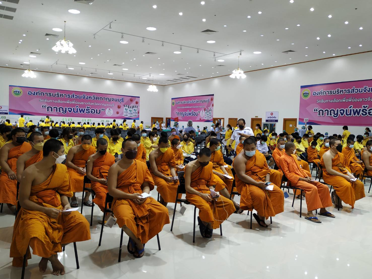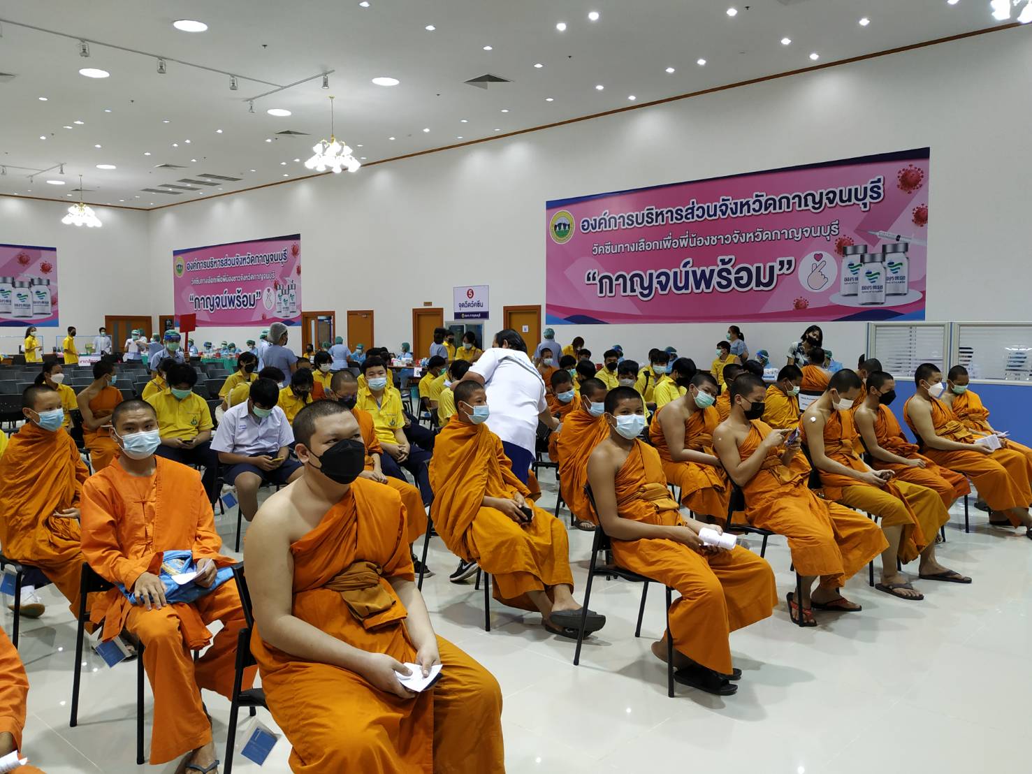 ในวันที่ ๑๐ ตุลาคม พ.ศ.๒๕๖๔ พระครูกาญจนสุตาภรณ์ ผอ.โรงเรียน พาสามเณรนักเรียน โรงเรียนพระปริยัติธรรมวัดไชยชุมพลชนะสงคราม ไปฉีดวัคซีน ขออนุโมทนาขอบคุณ คุณหมอและบุคลากร เจ้าหน้าที่ทุกท่านที่ให้ความนุเคราะห์ การฉีดวัคซีนไฟเซอร์ ให้กับสามเณรนักเรียนในวันนี้ ขออนุโมทนาบุญกับทุกๆ ท่าน ที่อำนวยความสะดวกในครั้งนี้ ขออนุโมทนาขอบคุณ รองผอ. และคุณครูอาคม ร.ร.อนุบาลวัดไชยชุมพลฯ ที่ขับรถรับ ส่งสามเณร ณ. อบจ.กาญจนบุรี |