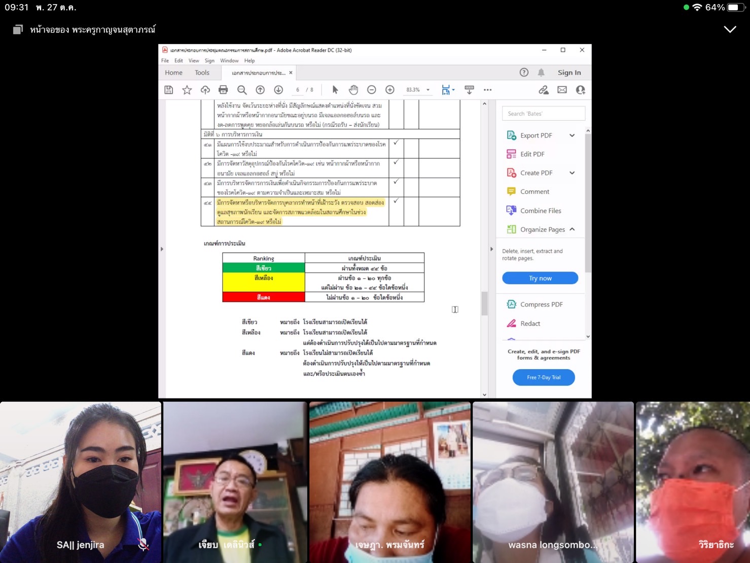 ในวันที่ ๒๗ ตุลาคม พ.ศ.๒๕๖๔ พระครูกาญจนสุตาภรณ์ ผอ.ร.ร.พระปริยัติธรรมวัดไชยชุมพลชนะสงคราม ได้รับมอบหมายจาก พระเทพปริยัติโสภณ ประธานกรรมการสถานศึกษา ให้เป็นประธานประชุม คณะกรรมการสถานศึกษา เพื่อปรึกษาหารือการป้องกันการแพร่ระบาดของโรคติดเชื้อวัยรัสโคโรนา ๒๐๑๙ (COVD -19) และการเปิดเรียน ภาคเรียนที่ ๒ ปีการศึกษา ๒๕๖๔ ผ่ายระบบ ไลน์วีดีโอคอล |