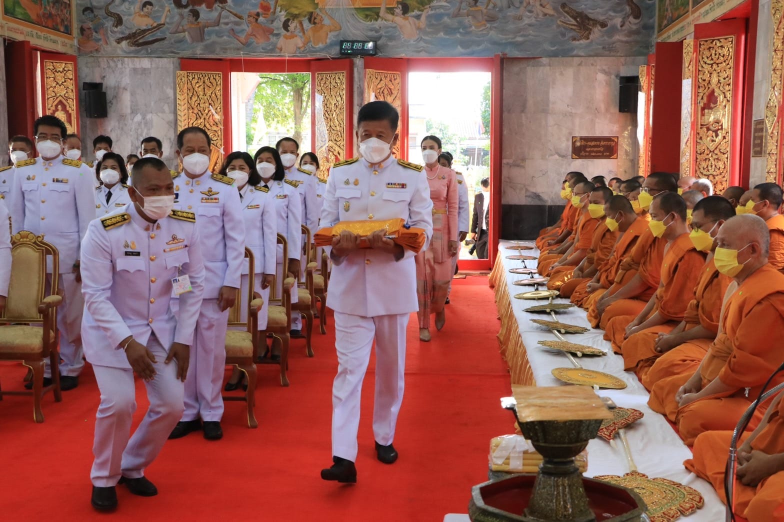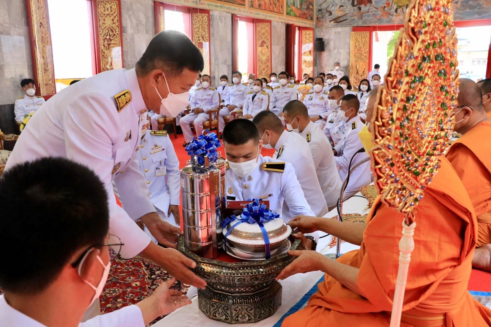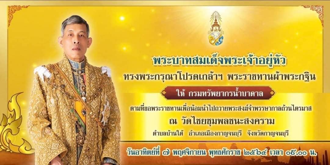 วันอาทิตย์ที่ ๗ พฤศจิกายน พ.ศ.๒๕๖๔ เวลา ๐๙.๐๐ น. พระบาทสมเด็จพระปรเมนทรรามาธิบดี ศรีสินทรมหาวชิราลงกรณ มหิศรภูมิพลราชวรางกูร กิติสิริสมบูรณอดุลยเดช สยามินทราธิเบศร ราชวโรดม บรมนาถบพิตร พระวชิรเกล้าเจ้าอยู่หัว ผู้ทรงพระคุณอันประเสริฐ กอปรด้วยพระราชศรัทธา โปรดเกล้าโปรดกระหม่อม พระราชทานผ้ากฐินให้ กรมทรัพยากรน้ำบาดาล ซึ่งนำโดย นายศักดิ์ดา วิเชียรศิลป์ อธิบดีกรมทรัพยากรน้ำบาดาล คณะผู้บริหาร ข้าราชการ และเจ้าหน้าที่ ในสังกัดกรม ตามที่ขอพระราชทาน เพื่อน้อมนำมาถวายแก่พระภิกษุสงฆ์ผู้จำพรรษากาลครบถ้วนไตรมาส ณ วัดไชยชุมพลชนะสงคราม พระอารามหลวง โดยมี พระเทพปริยัติโสภณ เจ้าอาวาสวัดไชยชุมพลชนะสงคราม พระอารามหลวง (วัดใต้) เป็นประธานฝ่ายสงฆ์ พร้อมด้วยพระสงฆ์ทั้งพระอาราม ในการรับการถวายผ้าพระกฐินพระราชทาน #และมอบทุนการศึกษา ให้กับโรงเรียนพระปริยัติธรรมวัดไชยชุมพลชนะสงคราม จำนวน ๑๐,๐๐๐ บาท โดยมีนางวาสนา หลงสมบุญ รองผู้อำนวยการ รับมอบ ณ พระอุโบสถวัดไชยชุมพลชนะสงคราม |