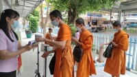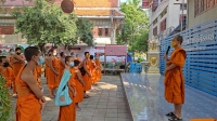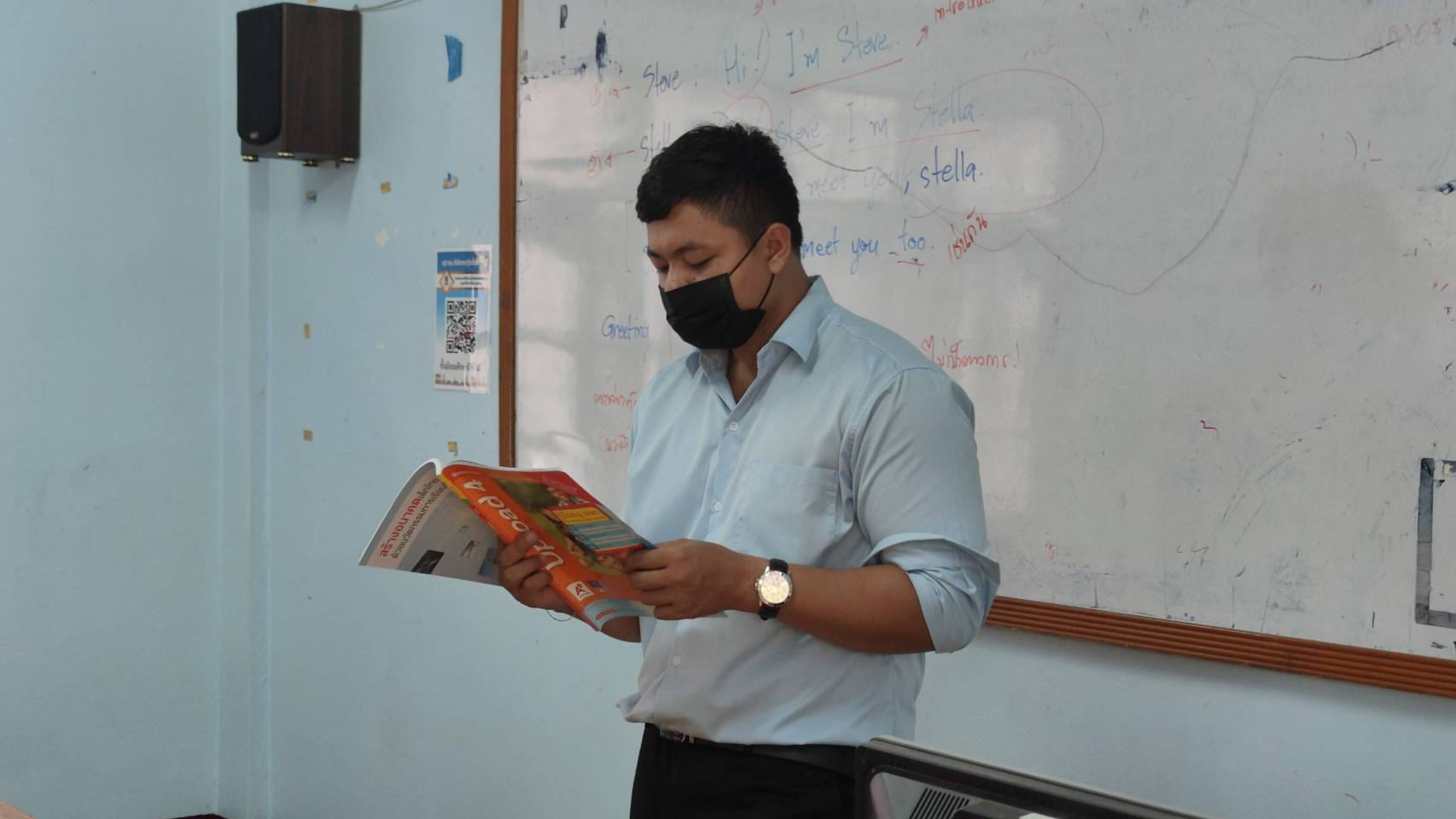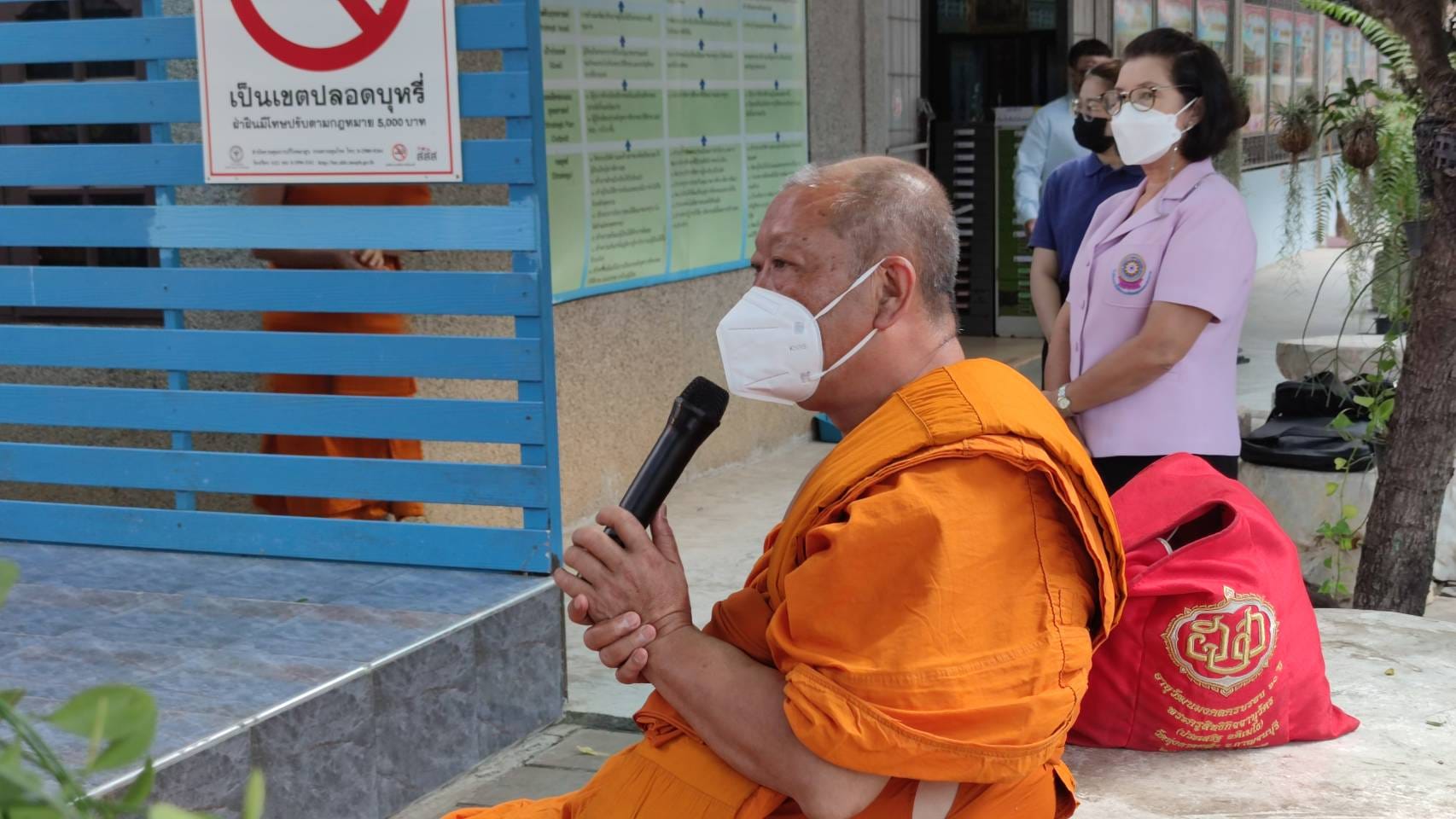 กล่าวให้โอวาทแก่นักเรียน พร้อมทั้งปฏิบัติตามตามมาตรการการป้องกันการติดเชื้อไวรัสโคโรน่า 2019 อย่างเคร่งครัด