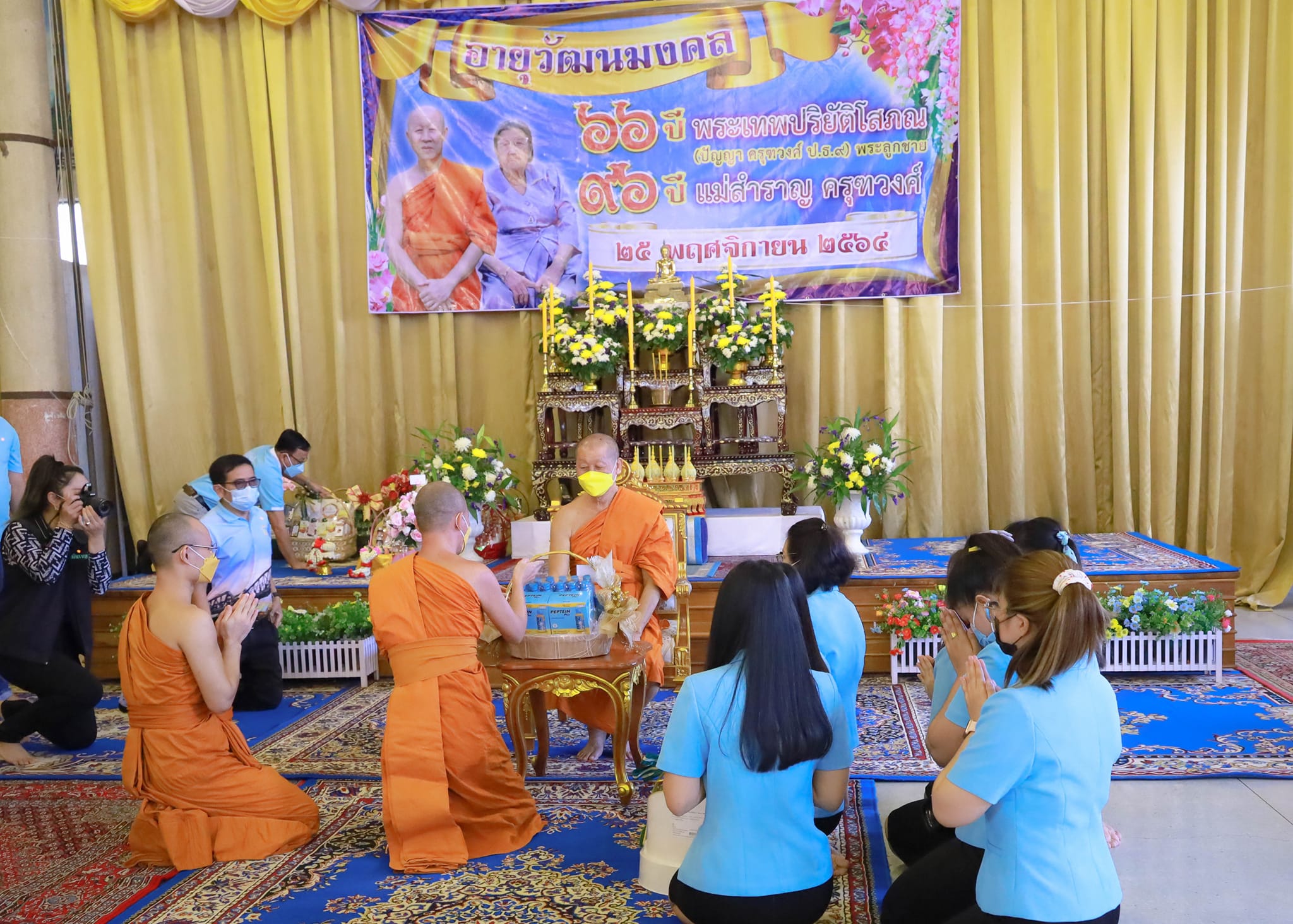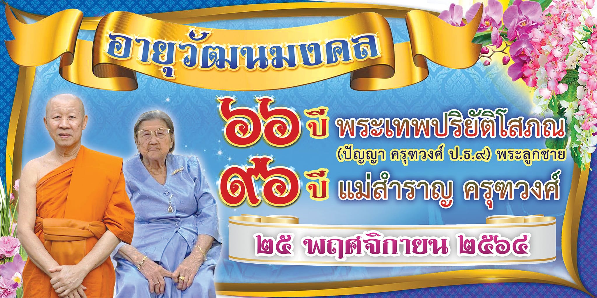 ในวันที่ ๒๕ พฤศจิกายน ๒๕๖๔ พระครูกาญจนสุตาภรณ์ ผอ.โรงเรียนพระปริยัติธรรมวัดไชยชุมพลชนะสงคราม นำคณะครู ถวายกระเช้า เนื่องในวันอายุวัฒนมงคล ๖๖ ปี พระเทพปริยัติโสภณ (เจ้าคุณปัญญา) เจ้าคณะจังหวัดกาญจนบุรี เจ้าอาวสวัดไชยชุมพลชนะสงคราม และผู้จัดการโรงเรียน ในการนี้หลวงพ่อได้แจกทาน และทุนการศึกษา ณ ศาลาการเปรียญวัดไชยชุมพลชนะสงคราม |