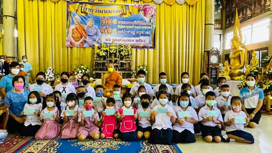 ในวันที่ ๒๕ พฤศจิกายน ๒๕๖๔ พระครูกาญจนสุตาภรณ์ ผอ.โรงเรียนพระปริยัติธรรมวัดไชยชุมพลชนะสงคราม นำคณะครู ถวายกระเช้า เนื่องในวันอายุวัฒนมงคล ๖๖ ปี พระเทพปริยัติโสภณ (เจ้าคุณปัญญา) เจ้าคณะจังหวัดกาญจนบุรี เจ้าอาวสวัดไชยชุมพลชนะสงคราม และผู้จัดการโรงเรียน ในการนี้หลวงพ่อได้แจกทาน และทุนการศึกษา ณ ศาลาการเปรียญวัดไชยชุมพลชนะสงคราม |