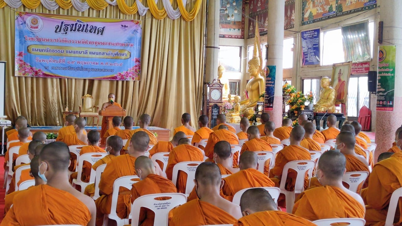 เป็นประธานจุดธูปเทียนบูชาพระรัตนตรัย ในพิธีปฐมนิเทศนักเรียน ประจำปีการศึกษา ๒๕๖๕ ของโรงเรียนพระปริยัติธรรมวัดไชยชุมพลชนะสงคราม