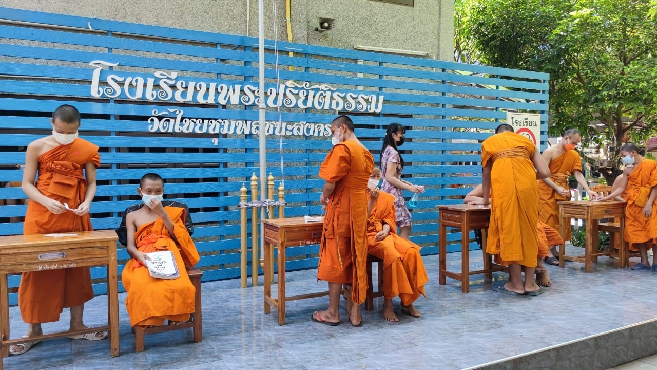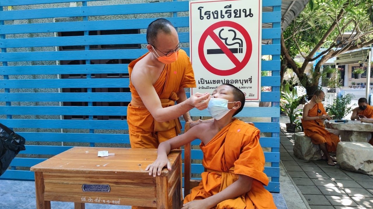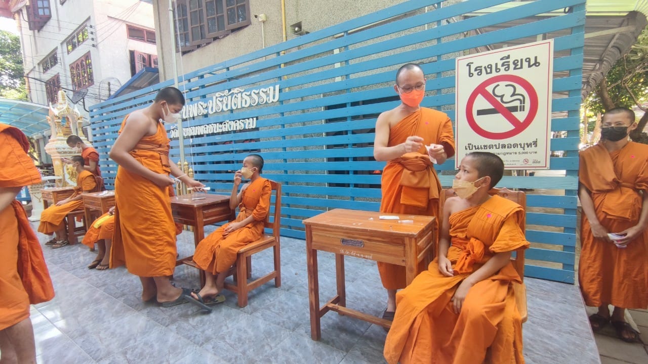 และทำการตรวจ ATK สามเณรทุกรูปก่อนเข้าเรียน เพื่อความปลอดภัยของทุกรูป