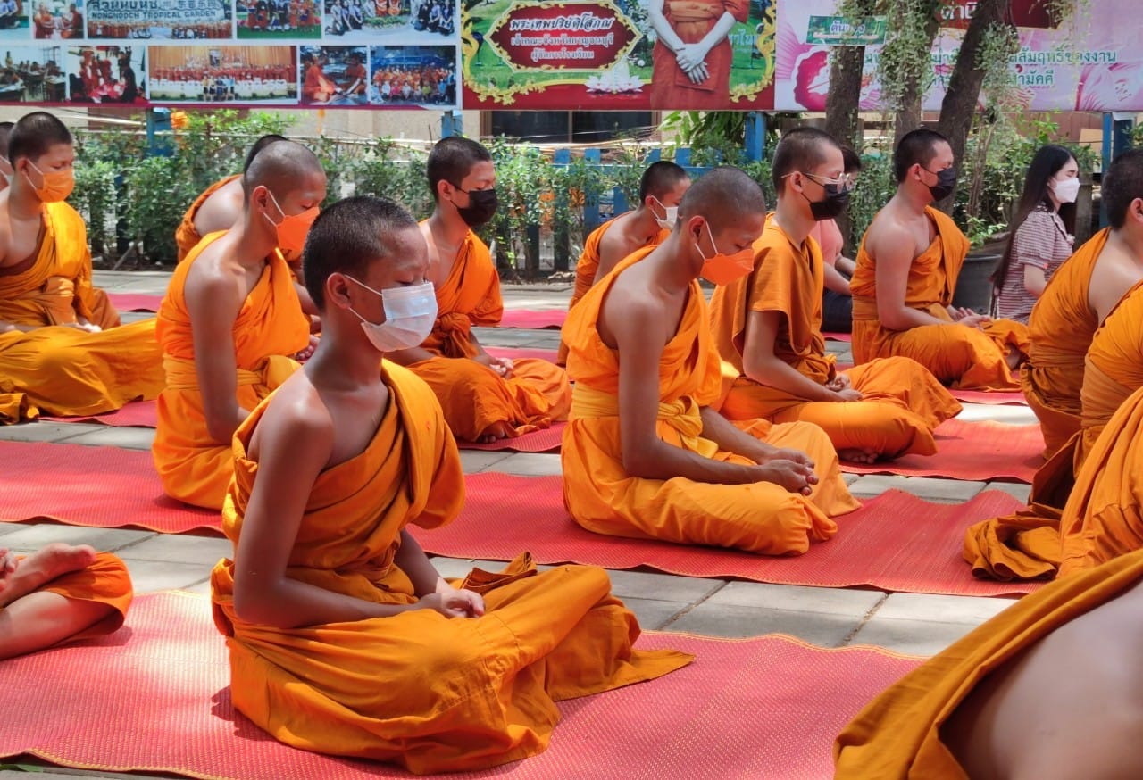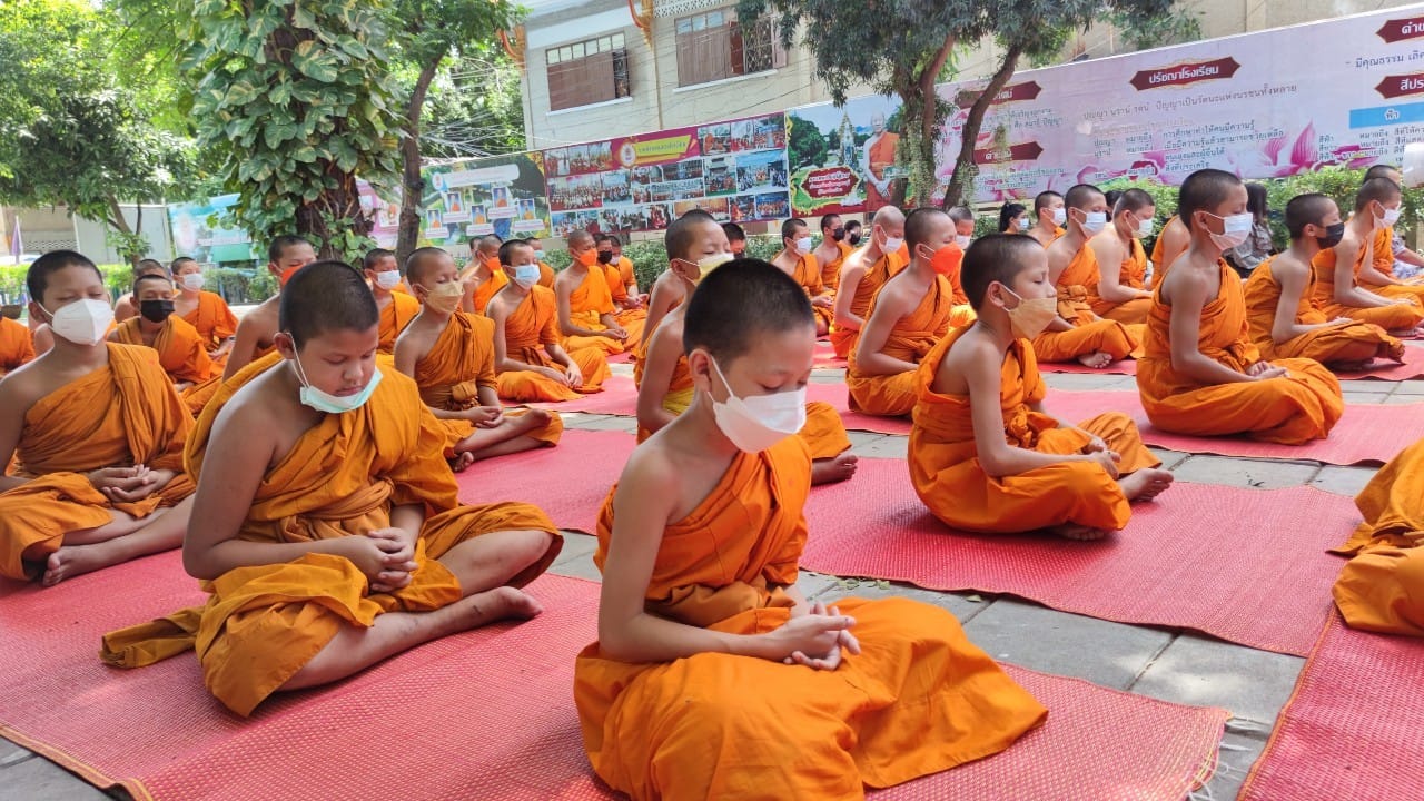 นำคณะครู สามเณรนักเรียน เจริญพุทธมนต์ และเจริญจิตภาวนา