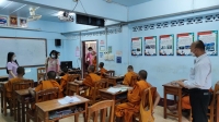 วันอังคารที่ ๒๑ มิถุนายน ๒๕๖๕ เวลา ๐๙.๐๐ น. นายณัฐกิตติ์ เขียวน้อยรัชตะ นักวิชาการศาสนาชำนาญพิเศษ สำนักงานพุทธศาสนาจังหวัดกาญจนบุรี ติดตามตรวจเยี่ยมสามเณร โรงเรียนพระปริธรรมวัดไชยชุมพลชนะสงคราม พร้อมคณะ โดยมีพระครูกาญจนสุตาภรณ์ ผอ.โรงเรียน พร้อมคณะครูให้การต้อนรับ |