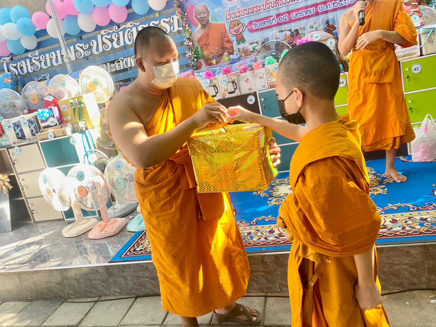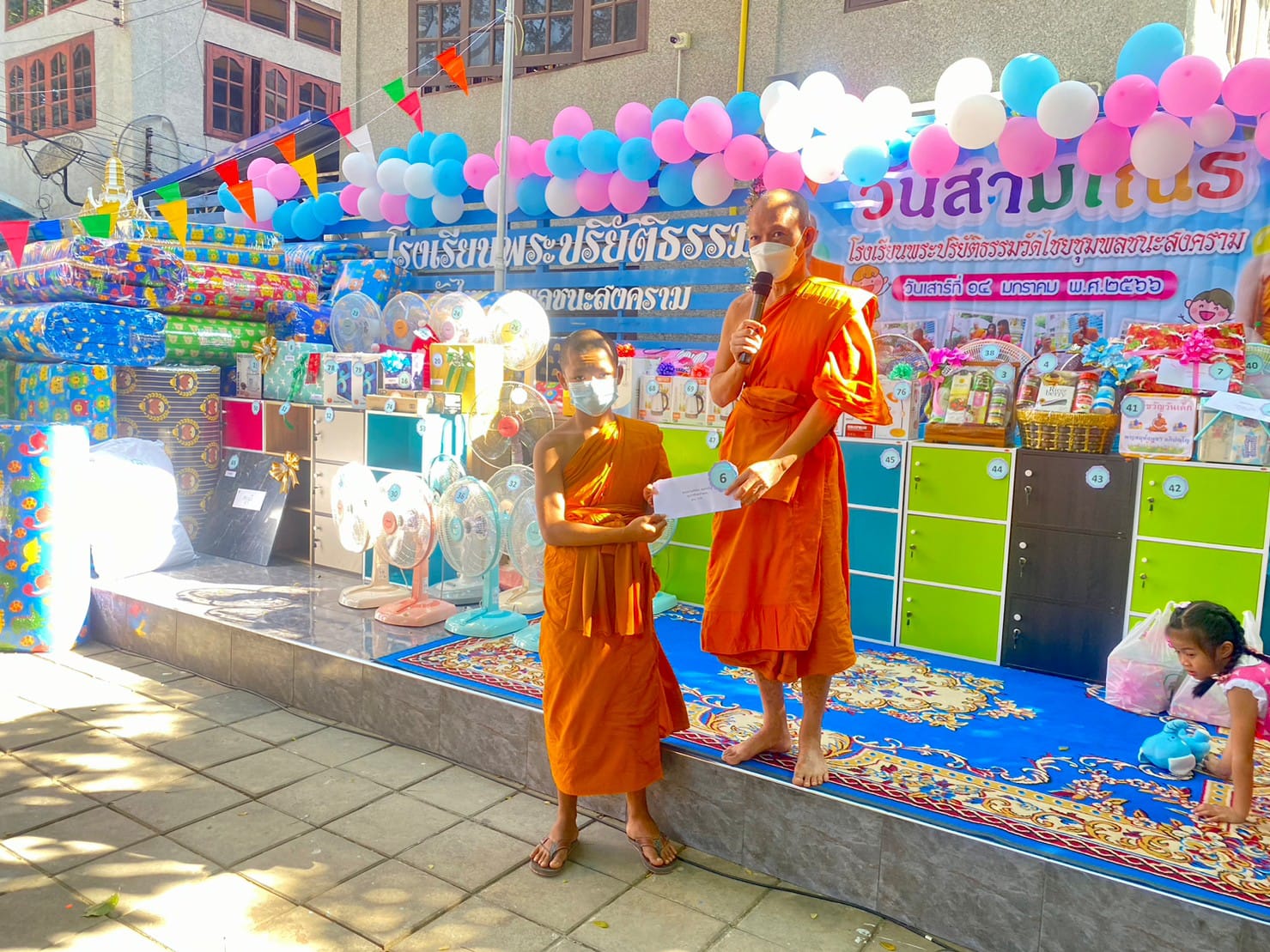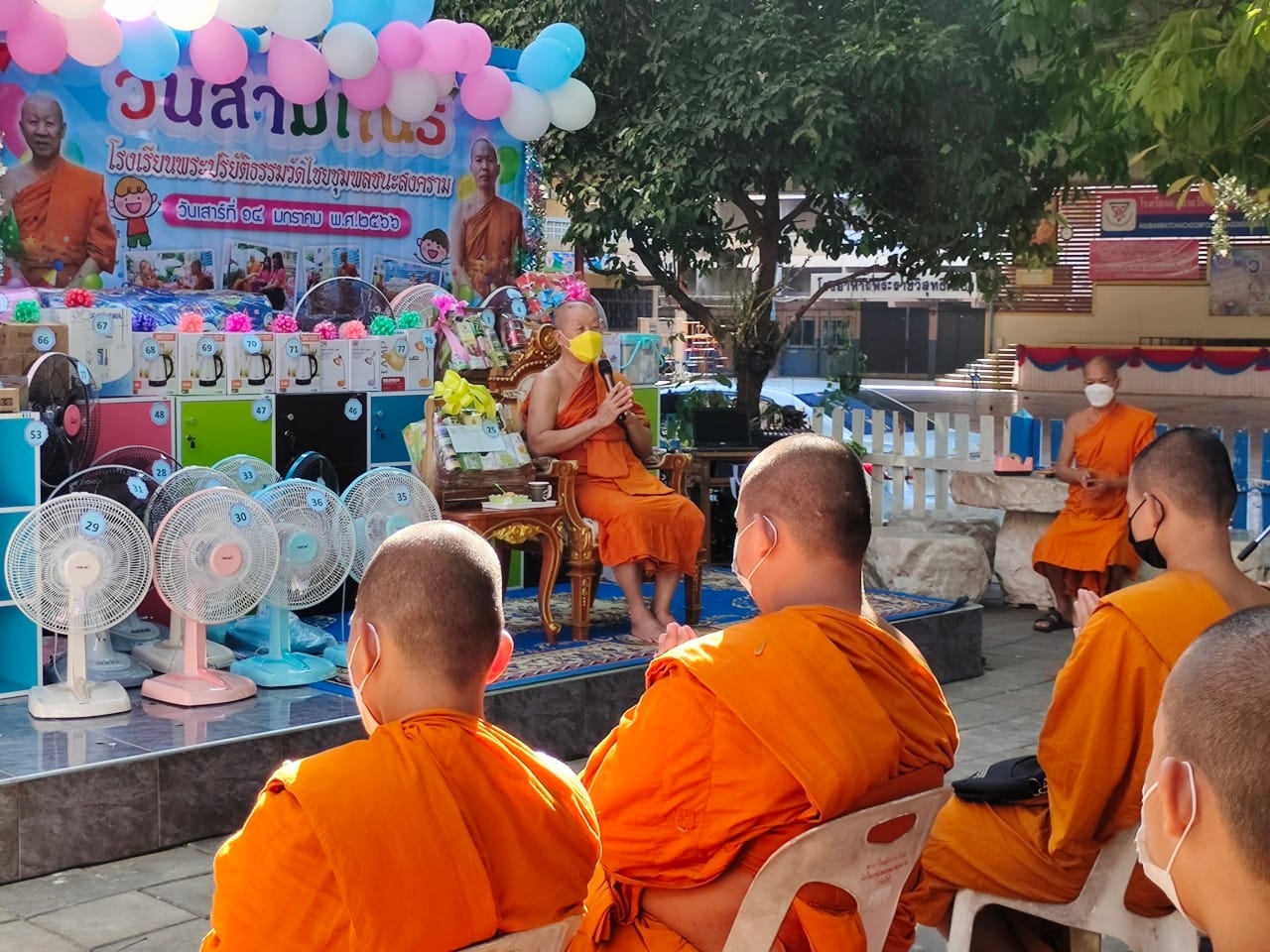 งานวันสามเณรโรงเรียนปริยัติธรรมวัดไชยชุมพลชนะสงคราม ประจำปี ๒๕๖๖ พระครูกาญจนสุตาภรณ์ ผู้อำนวยการโรงเรียน กล่วรายงานต่อพระเทพปริยัติโสภณ ผู้จัดการโรงเรียนพระปริยัติธรรมวัดไชยชุมพลชนะสงคราม เป็นประธานเปิดงาน รองวาสนา หลงสมบุญ อ่านสารนายกรัฐมนตรี . ด้วยวันเสาร์ที่ 2 ของเดือนมกราคมทุกปีเป็นวันเด็กแห่งชาติซึ่งปีนี้ตรงกับวันที่ ๑๔ มกราคม ๒๕๖๖ โรงเรียนปริยัติธรรมวัดไชยชุมพลชนะสงครามจึงจัดงานวันสามเณรขึ้นด้วยเหตุผลที่ว่าสามเณรของโรงเรียนยังอยู่ในวัยที่เป็นเยาวชนถึงแม้จะรักษาศีล ๑๐ ข้อแต่วัยยังอยู่ในระยะที่ต้องได้รับการพัฒนาให้เหมาะสมตามวัยทั้งนี้เพื่อให้มีสุขภาพที่ดีมีความสุขดังนั้นโรงเรียนจึงจัดกิจกรรมมอบความสุขให้แก่สามเณรทุกรูปด้วยการมอบของขวัญเป็นของใช้ส่วนตัวให้กับสามเณร และ จับฉลากของขวัญตามผู้ที่มีจิตศรัทธาตั้งใจมอบให้แก่สามเณรจำนวนทั้งหมด ๗๙ รูป ของอนุโมทนาบุญทุกๆ ท่านที่มอบของรางวัล และปัจจัยซื้อของขวัญให้กับสามเณร พร้อมนำอาหารมาเลี้ยง ประกอบด้วยคุณวิไล สุริวงค์และหลานๆ นำส้มตำ ข้าวเหนียว ไก่ทอด, ทีมจิตอาสาใจนางฟ้า เครป น้ำดื่ม, ครูกบ ขนมไทยากิ, คุณครูรัตติยา วิษณุวงค์ ไอศรีม ๑ ถัง |