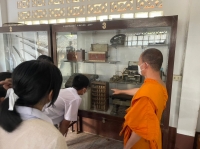 พระครูกาญจนสุตาภรณ์ ผอ.ร.ร.พระปริยัติธรรมวัดไชยชุมพลชนะสงคราม ให้การต้อนรับนักเรียน คณะยุวทูตรักษ์ถิ่น โรงเรียนกาญจนานุเคราะห์ โครงงานคุณธรรมวัดไชยชุมพลชนะสงคราและพิพิธภัณฑ์สงครามอักษะเฉลยสึก มานำเสนองานแลกเปลี่ยนเรียนรู้ กับสามเณร โรงเรียนพระปริยัติธรรมวัดไชยชุมพลชนะสงคราม ชั้น ม.๑-๒ สัมภาษณ์และนำศึกษาแหล่งเรียนรู้ทิพยนาวาอาชาใน กราบขอพรหลวงปู่เปลี่ยน ชมพิพิธภัณฑ์