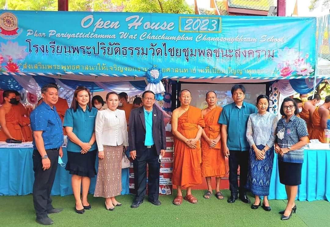วันศุกร์ที่ ๓ มีนาคม ๒๕๖๕ โรงเรียนอนุบาลวัดไชยชุมพลชนะสงคราม จัดงานเปิดบ้าน ว.ช.พ. OPEN HOUSE ปีการศึกษา ๒๕๖๕ โดยมี นางเตือนใจ รักษาพงศ์ ผู้อำนวยการสำนักงานเขตพื้นที่การศึกษาประถมศึกษากาญจนบุรีเขต ๑ เป็นประธานในพิธี พระเทพปริยัติโสภณ เจ้าคณะจังหวัดกาญจนบุรี เจ้าอาวาสวัดไชยชุมพลชนะสงคราม ผู้จัดการโรงเรียนพระปริยัติธรรมฯ เป็นประธานฝ่ายสงฆ์ พร้อมด้วยพระครู กาญจนสุตาภรณ์ ผู้อำนวยการโรงพระปริยัติธรรมวัดชัยชุมพลชนะสงคราม ภายในงานมีการนำเสนอผลงานของนักเรียนระดับประถมศึกษา ปีที่ ๑-๖ ชั้นมัธยมศึกษาปีที่ ๑-๓ และโรงเรียนพระปริยัติธรรมวัดไชยชุมพลชนะสงคราม ออกบูธสกรีนเสื้อ ถุงผ้าโลกร้อน ลงมือทำด้วยตนเอง และขนมทองม้วนน้องเณรฟรี ณ โดมเจ้าคุณปัญญาโรงเรียนอนุบาลวัดไชยชุมพลชนะสงคราม |