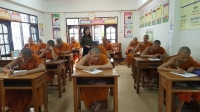 รับสมัครเรียนสามเณรและติดป้ายอิงค์เจ็ทบริเวณรั้วโรงเรียน