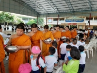 สามเณรโรงเรียนพระปริยัติธรรมวัดไชยฯ รับบาตรที่โรงเรียนอนุบาลวัดไชยฯ เนื่องในวันวิสาขบูชา