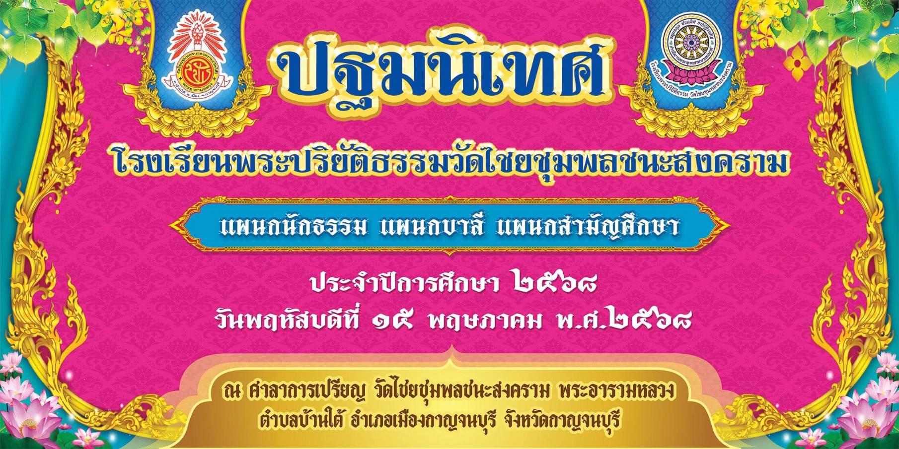 ยินดีต้อนรับเข้าสู่เว็บไซต์ โรงเรียนพระปริยัติธรรมวัดไชยชุมพลชนะสงครามค่ะ...