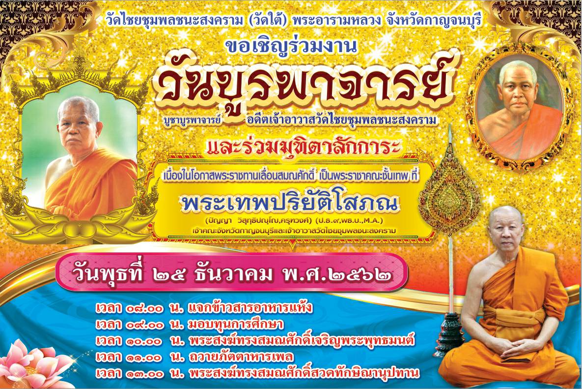 ขอเชิญร่วมงานบูรพาจารย์ บูชาบูรพาจารย์อดีตเจ้าอาวาสวัดไชยชุมพลชนะสงคราม