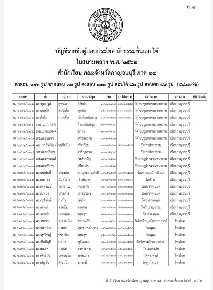 รายชื่อสามเณรผู้สอบผ่านนักธรรมชั้นเอก