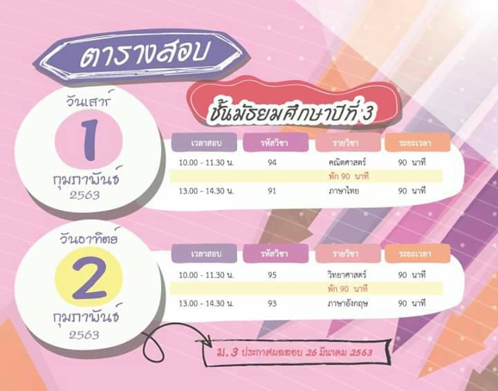 วันที่ ๑-๒ กุมภาพันธ์ ๒๕๖๓ สอบ O-NET