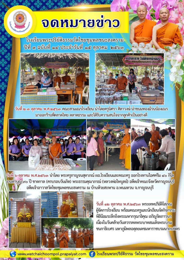 จดหมายข่าว ปีที่ ๓ ฉบับที่ ๑๔ ประจำวันที่ ๑๕ ตุลาคม ๒๕๖๓