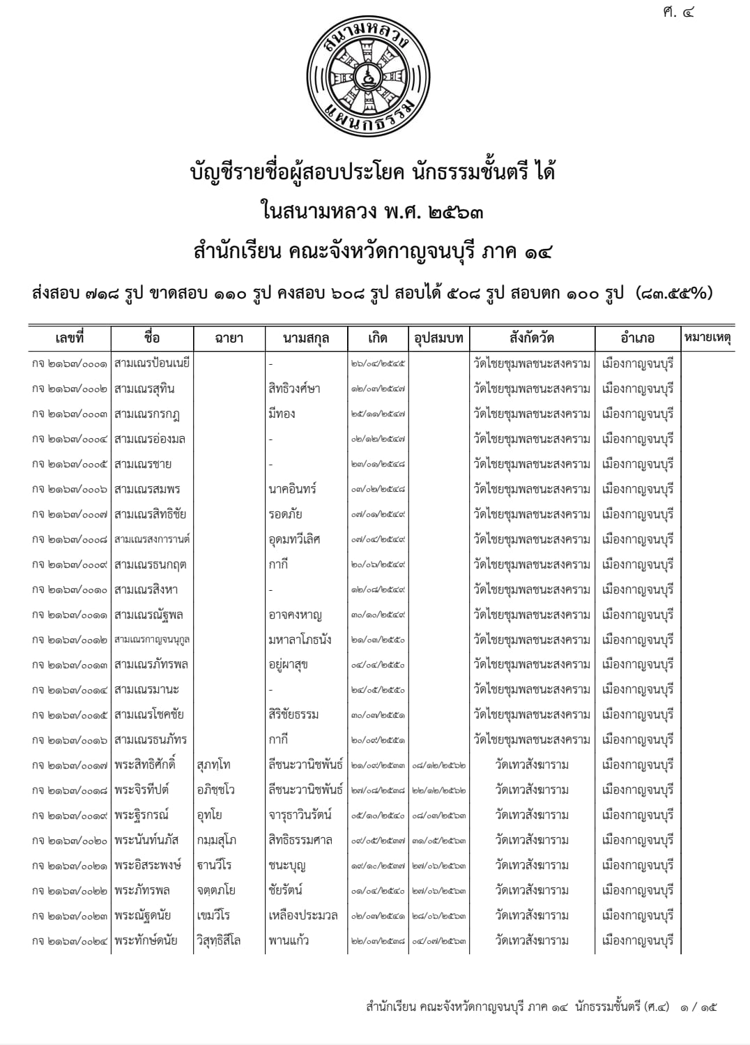 ผลสอบนักธรรมชั้นตรี ประจำปี ๒๕๖๓