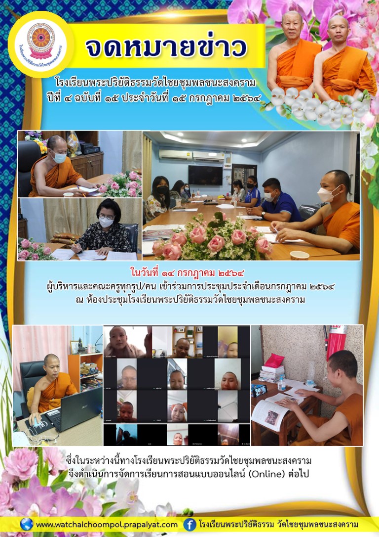 จดหมายข่าว ปีที่ ๔ ฉบับที่ ๑๕ ประจำวันที่ ๑๕ กรกฎาคม ๒๕๖๔