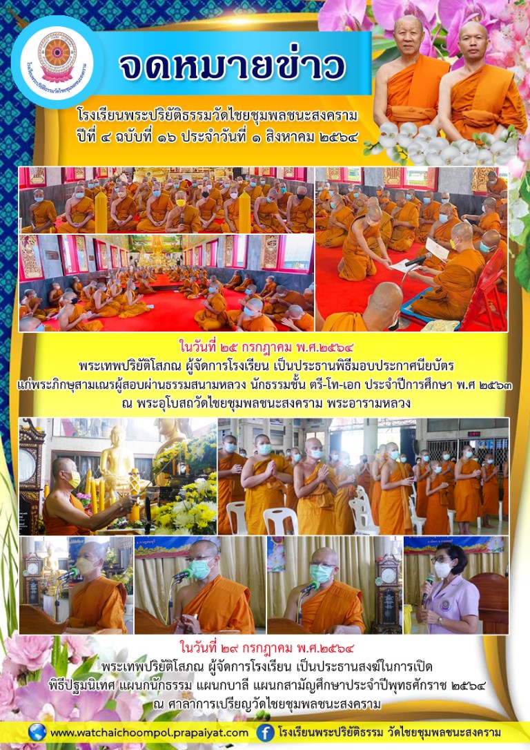 จดหมายข่าว ปีที่ ๔ ฉบับที่ ๑๖ ประจำวันที่ ๑ สิงหาคม ๒๕๖๔