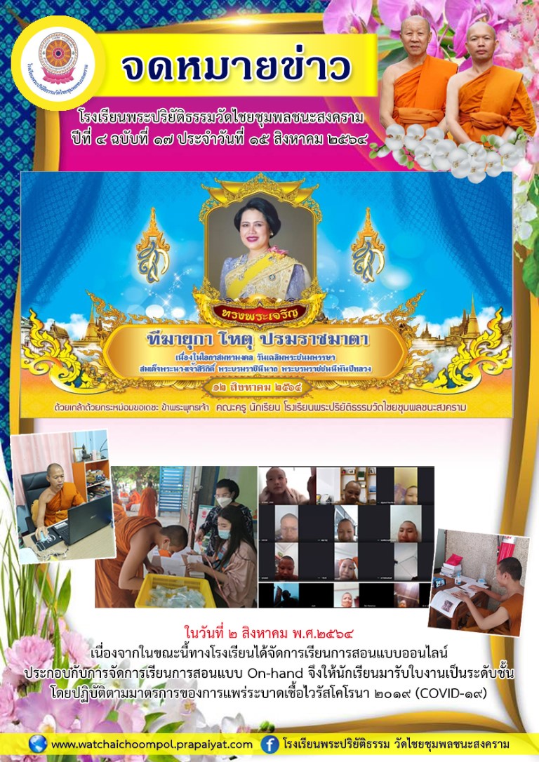 จดหมายข่าว ปีที่ ๔ ฉบับที่ ๑๗ ประจำวันที่ ๑๕ สิงหาคม ๒๕๖๔