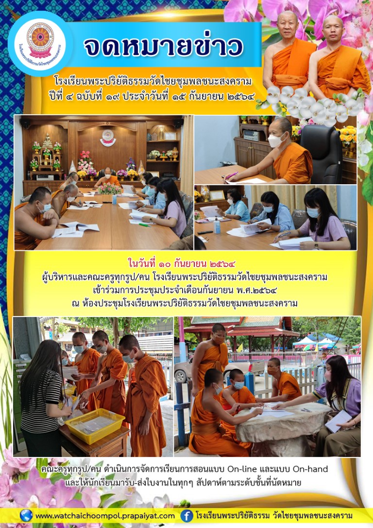 จดหมายข่าว ปีที่ ๔ ฉบับที่ ๑๙ ประจำวันที่ ๑๕ กันยายน ๒๕๖๔