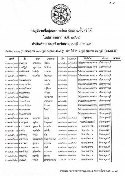 รายชื่อผู้สอบผ่านนักธรรมชั้นตรี ประจำปีการศึกษา ๒๕๖๔