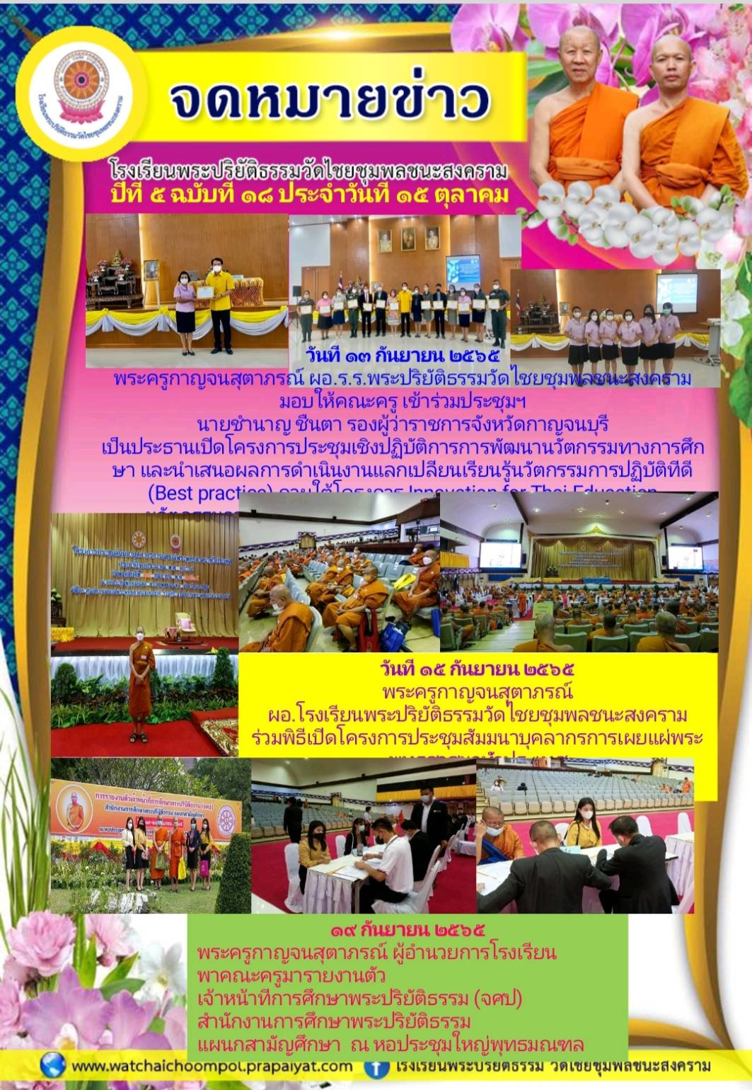 จดหมายข่าว ปีที่ ๕ ฉบับที่ ๑๘ ประจำวันที่ ๑๕ ตุลาคม ๒๕๖๕