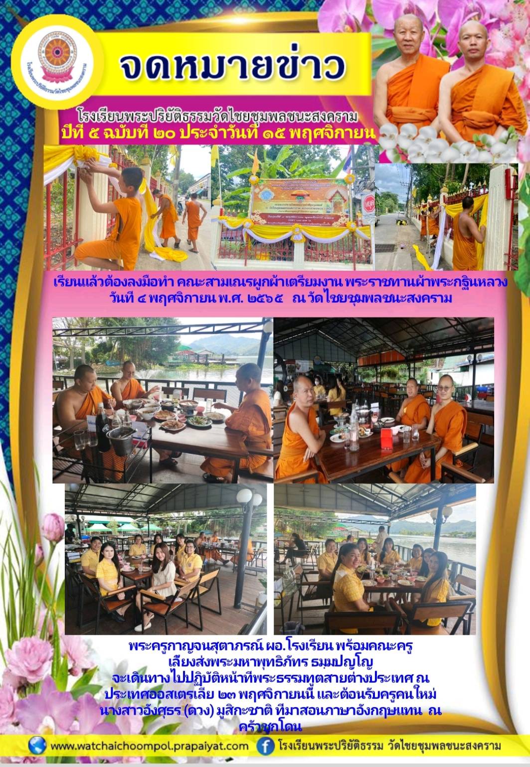 จดหมายข่าว ปีที่ ๕ ฉบับที่ ๑๙ ประจำวันที่ ๑๕ พฤศจิกายน ๒๕๖๕