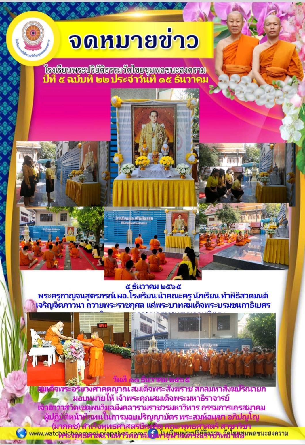 จดหมายข่าว ปีที่ ๕ ฉบับที่ ๒๑ ประจำวันที่ ๑๕ ธันวาคม ๒๕๖๕