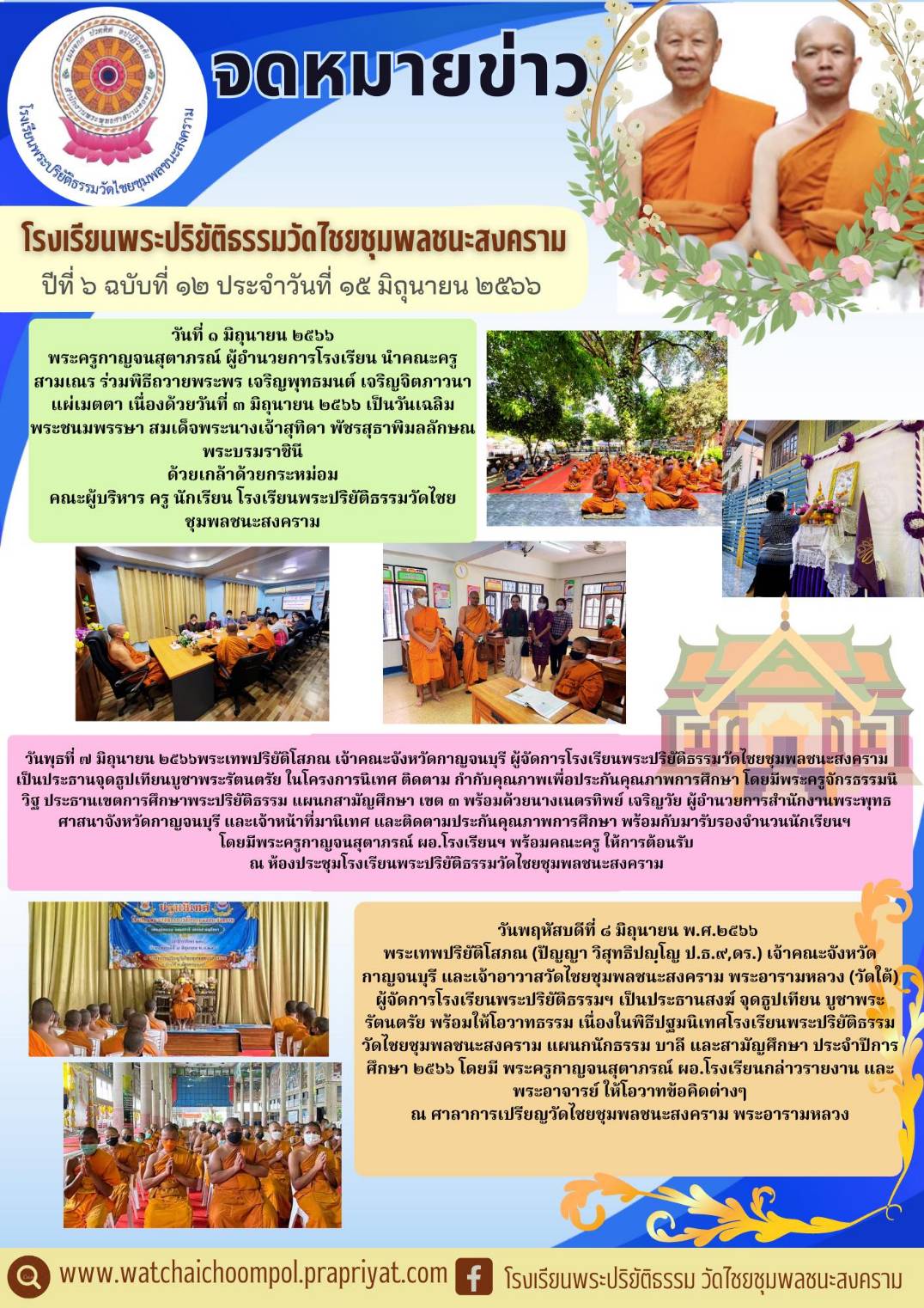 จดหมายข่าว ปีที่ ๖ ฉบับที่ ๑๒ ประจำวันที่ ๑๕ มิถุนายน ๒๕๖๖