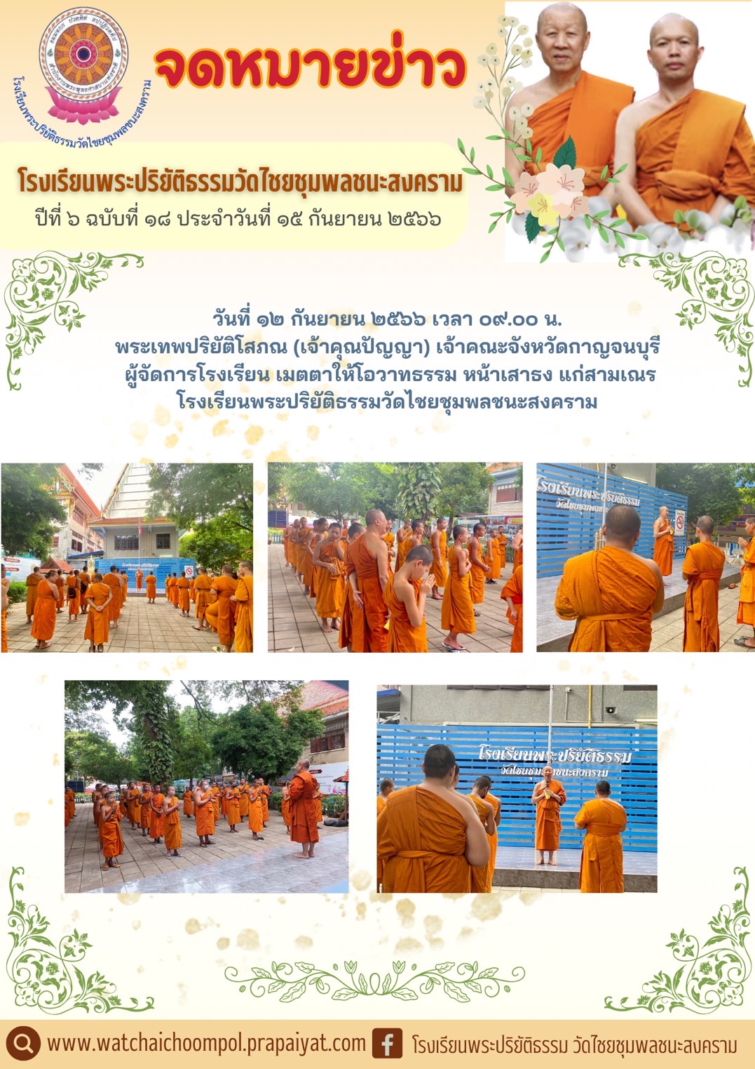 จดหมายข่าว ปีที่ ๖ ฉบับที่ ๑๘ ประจำวันที่ ๑๕ กันยายน ๒๕๖๖