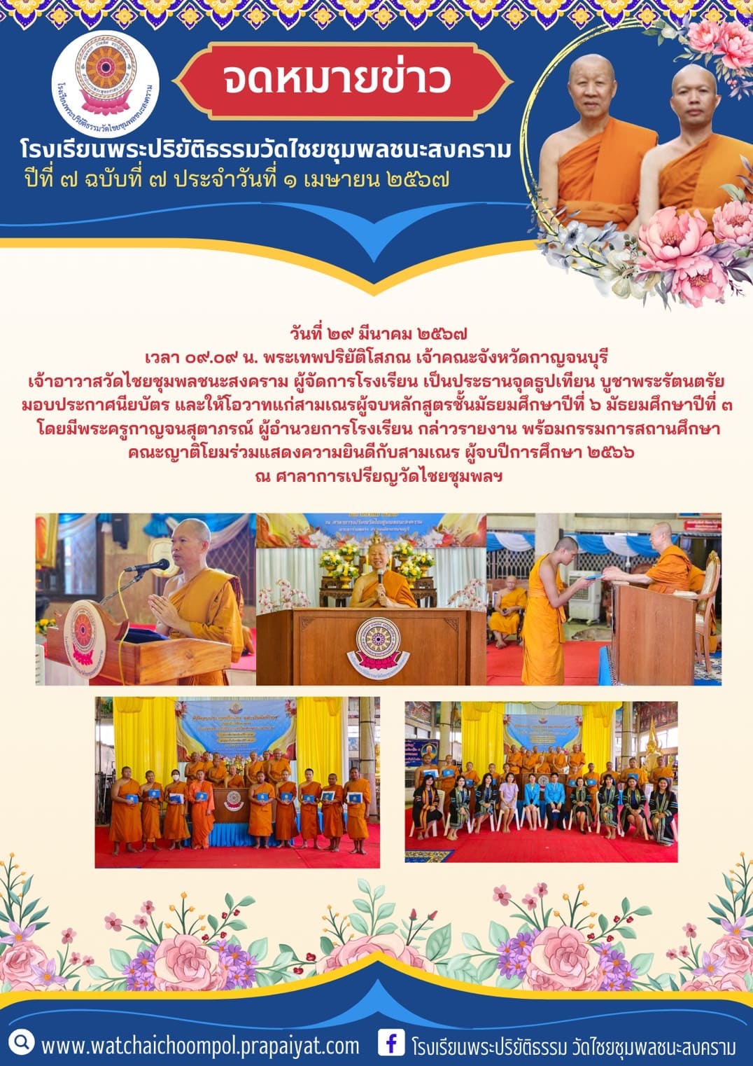 จดหมายข่าว ปีที่ ๗ ฉบับที่ ๗ ประจำวันที่ ๑ เมษายน ๒๕๖๗