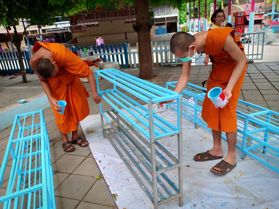 ชื่อผลงาน : ผลงานการทาสีชั้นวางรองเท้าใหม่ของสามเณร