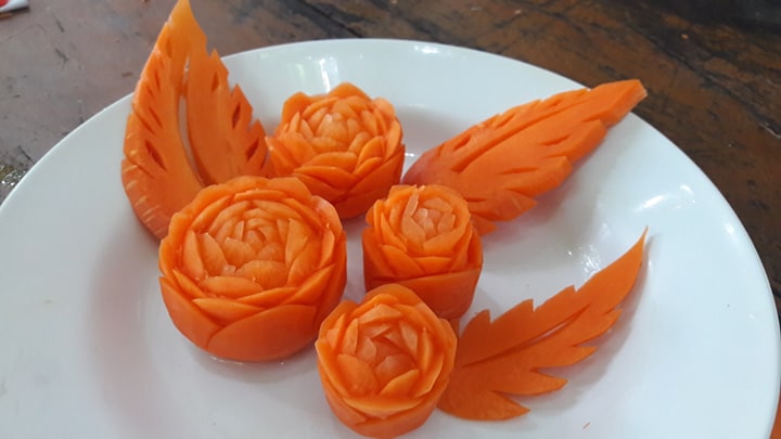 ชื่อผลงาน : ผลงานการแกะสลักดอกกุหลาบจากแครอท