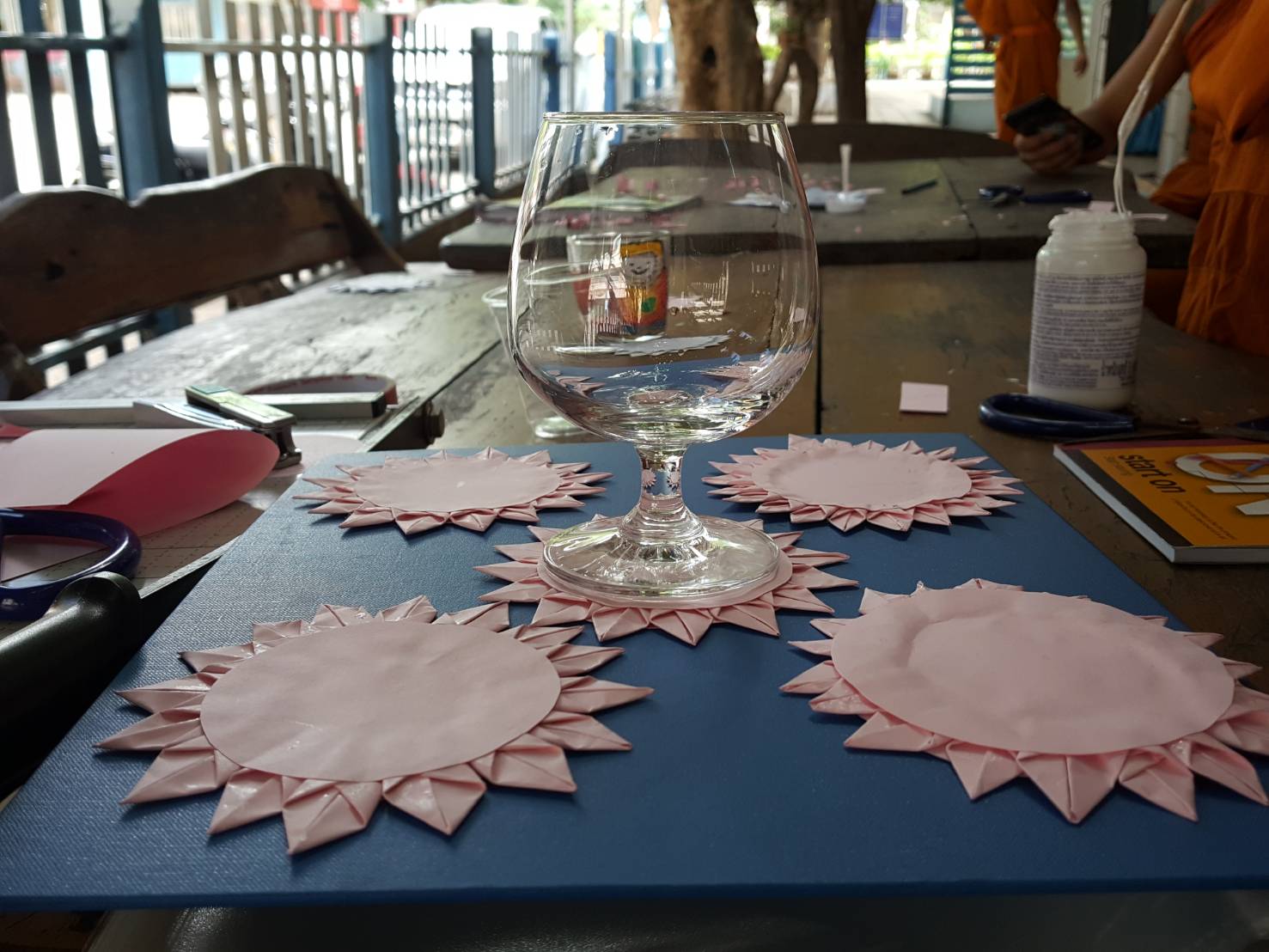 ชื่อผลงาน : ผลงานการพับกลีบบัวสาย เพื่อทำเป็นจานรองแก้ว
